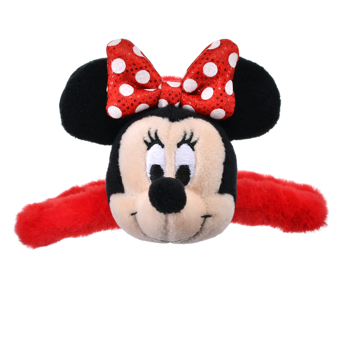 ぱっちり開いた大きな目、丸い耳がチャーミングな「ミニーマウス」をレイアウトしたぬいぐるみ風ヘアクリップ。