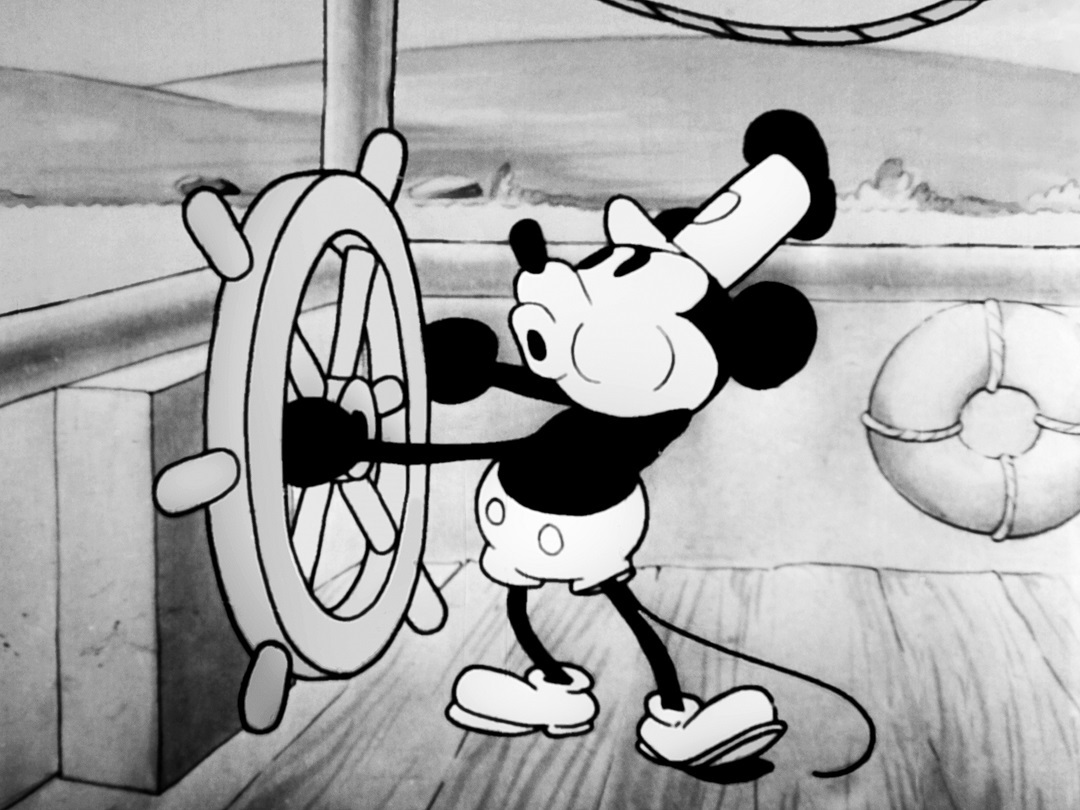 「ミッキーとミニーが初めて登場した『蒸気船ウィリー』の初演はニューヨークのコロニー劇場で行われた長編映画の前に公開された短編映画でした。