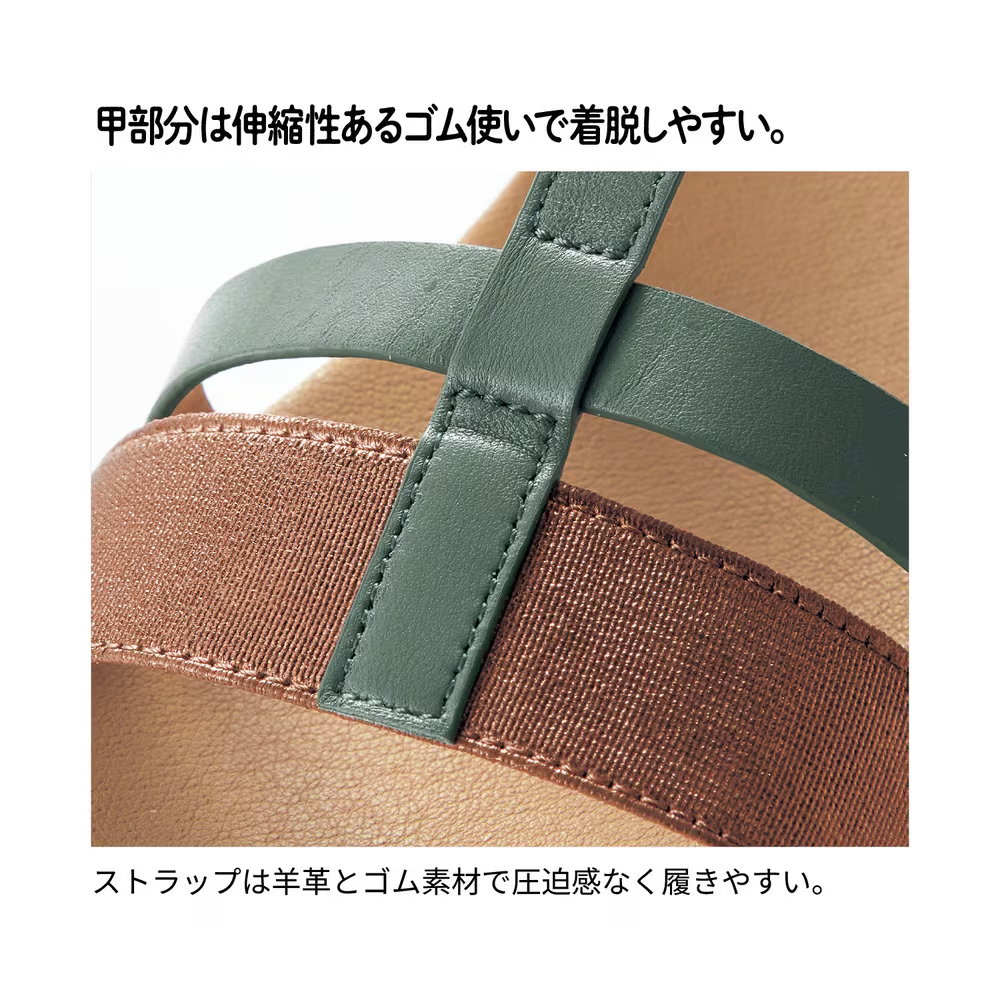 さらに甲部分にはゴム素材を使用し、圧迫感がなく履きやすい工夫がされています。