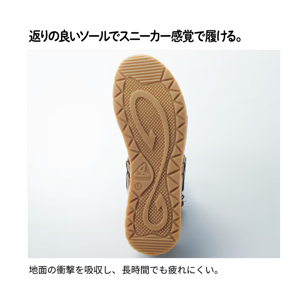 今回登場するのは、サンダルなのにスニーカー感覚で歩ける「スニーカーソールの本革ストラップサンダル」