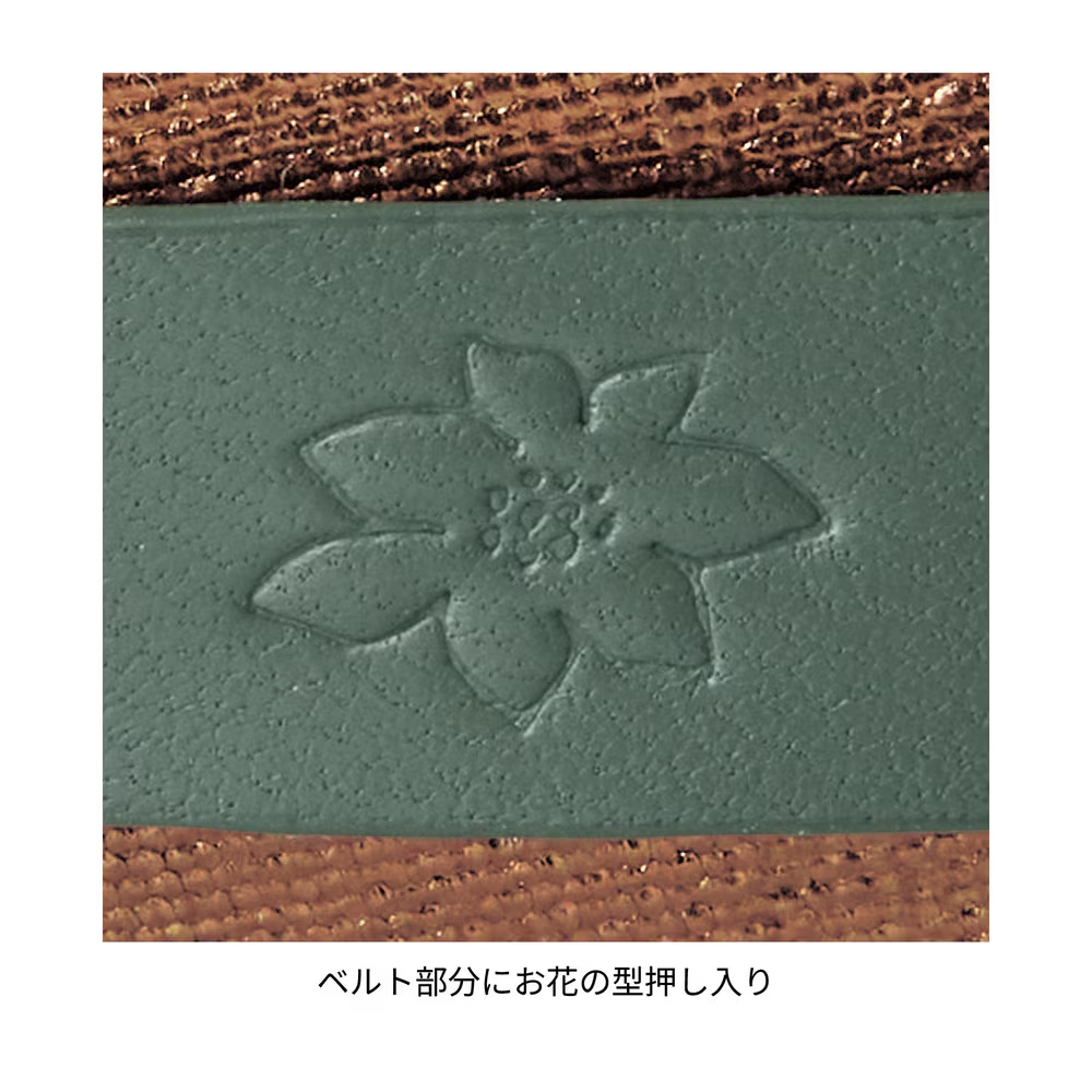 ベルト部分にお花の型押しが入って、よりエレガントな印象に。