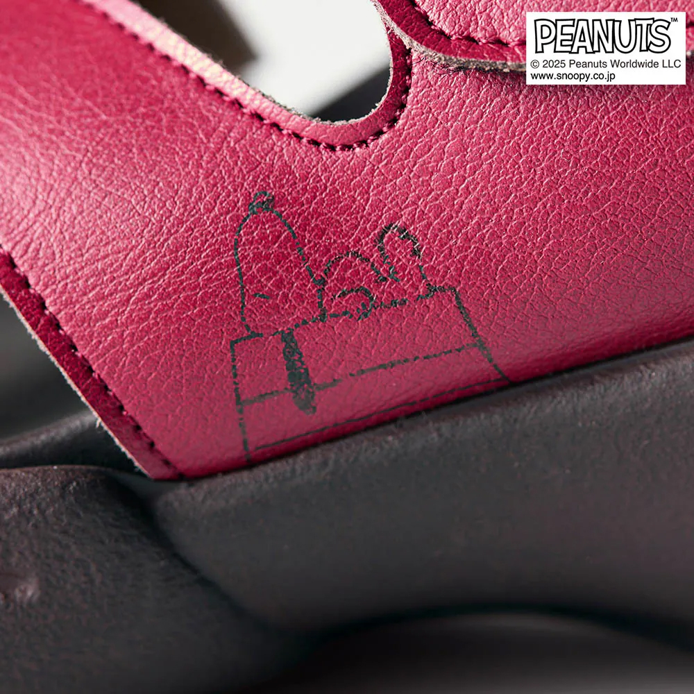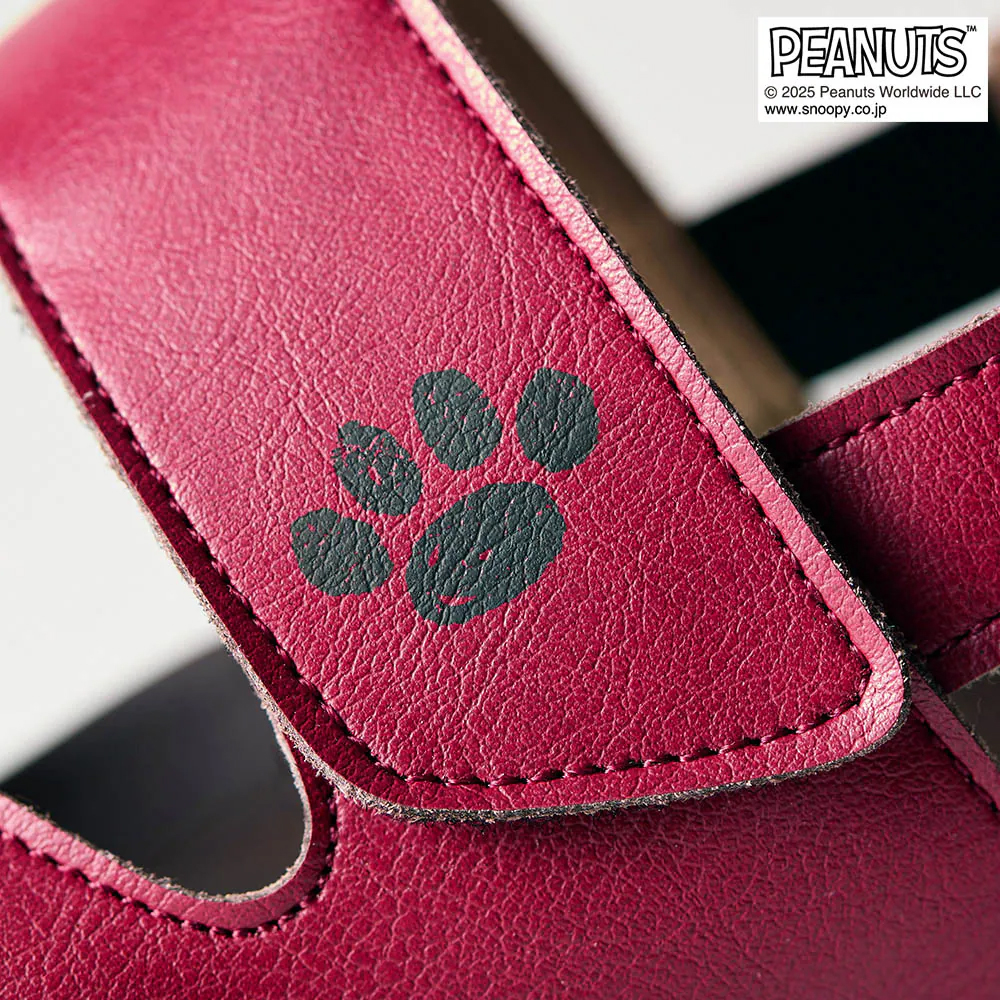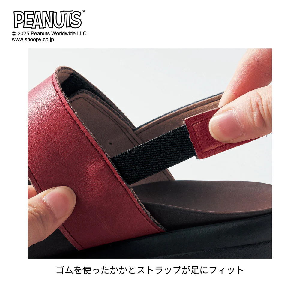 「スヌーピー」のおうちの屋根と同じ、レッドが映えるサンダル。
