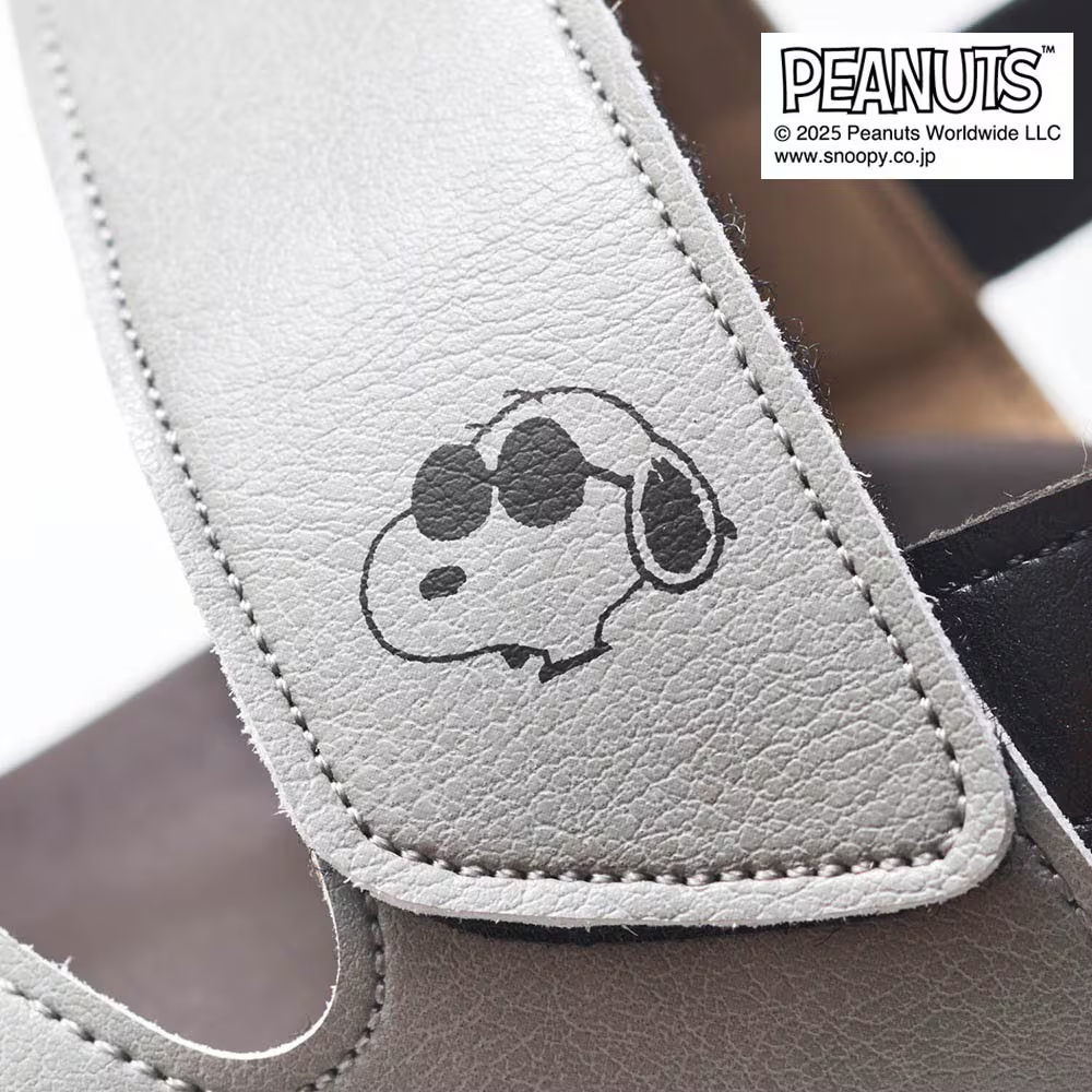コーディネートに「スヌーピー」モチーフを取り入れやすい、シンプルで合わせやすいデザインのサンダルです。