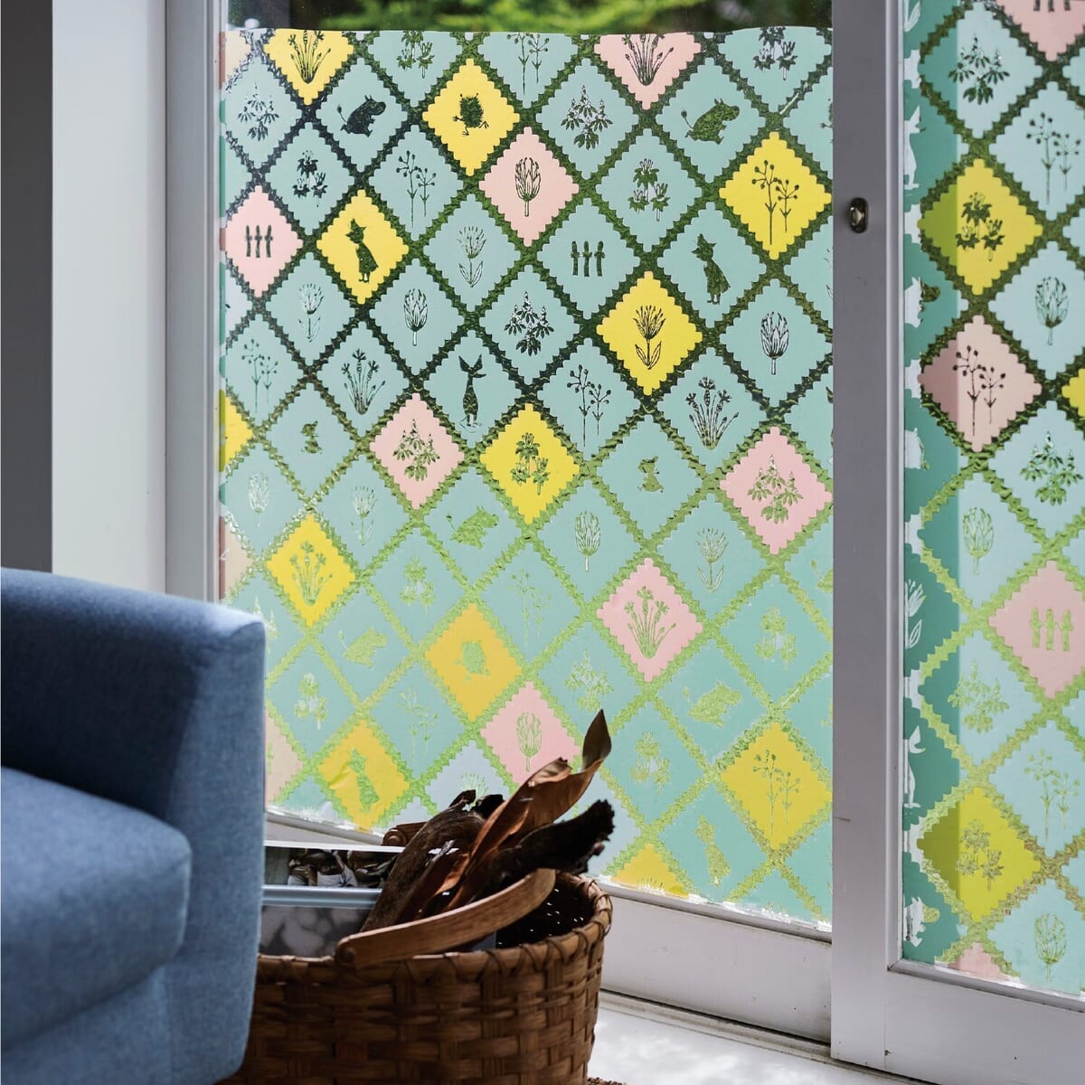 ステンドグラス風のカラフルなデザインで、窓辺を明るく彩りながら、ちょっとした目隠しになるシートです☆