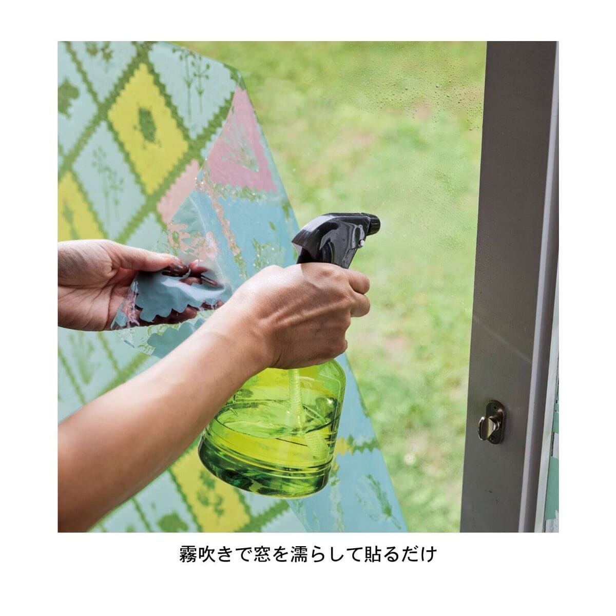 霧吹きで窓を濡らすだけで、簡単に貼り付けできます!