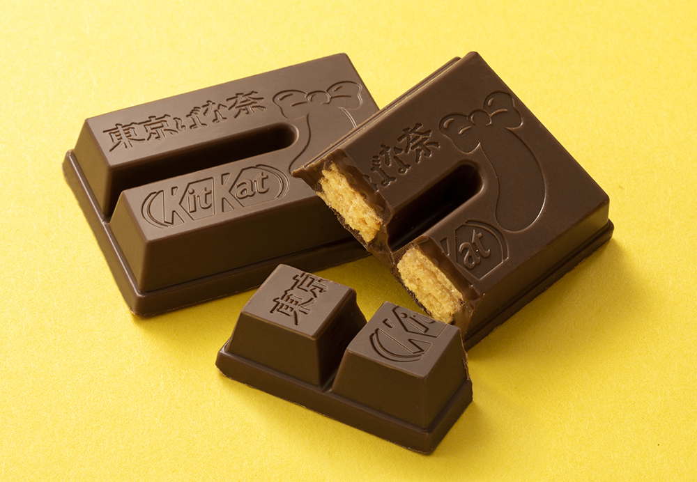 国内チョコレート売上No.1の「キットカット」とコラボレーションした「キットカット 東京ばな奈味」は、リッチなカカオ感が楽しめるチョコレートと、サクッサク食感のウエハース、そして表面のかわいいバナナの刻印がポイントです。