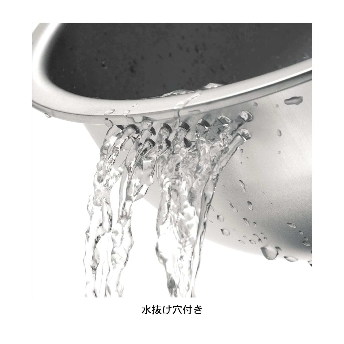 サイドには水抜け穴が付いており、水がいっぱいになっても中の野菜などはこぼれにくい設計です。