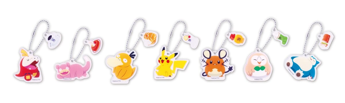 「ヤドンのいちごチョコシロノワール」「カビゴンのサルサチキンカツパン」「コダックのマンゴーミルク氷」「モクローの胡麻だれきしめん」のいずれか1品を注文で、オリジナルチャーム1個をランダムでプレゼントいたします。