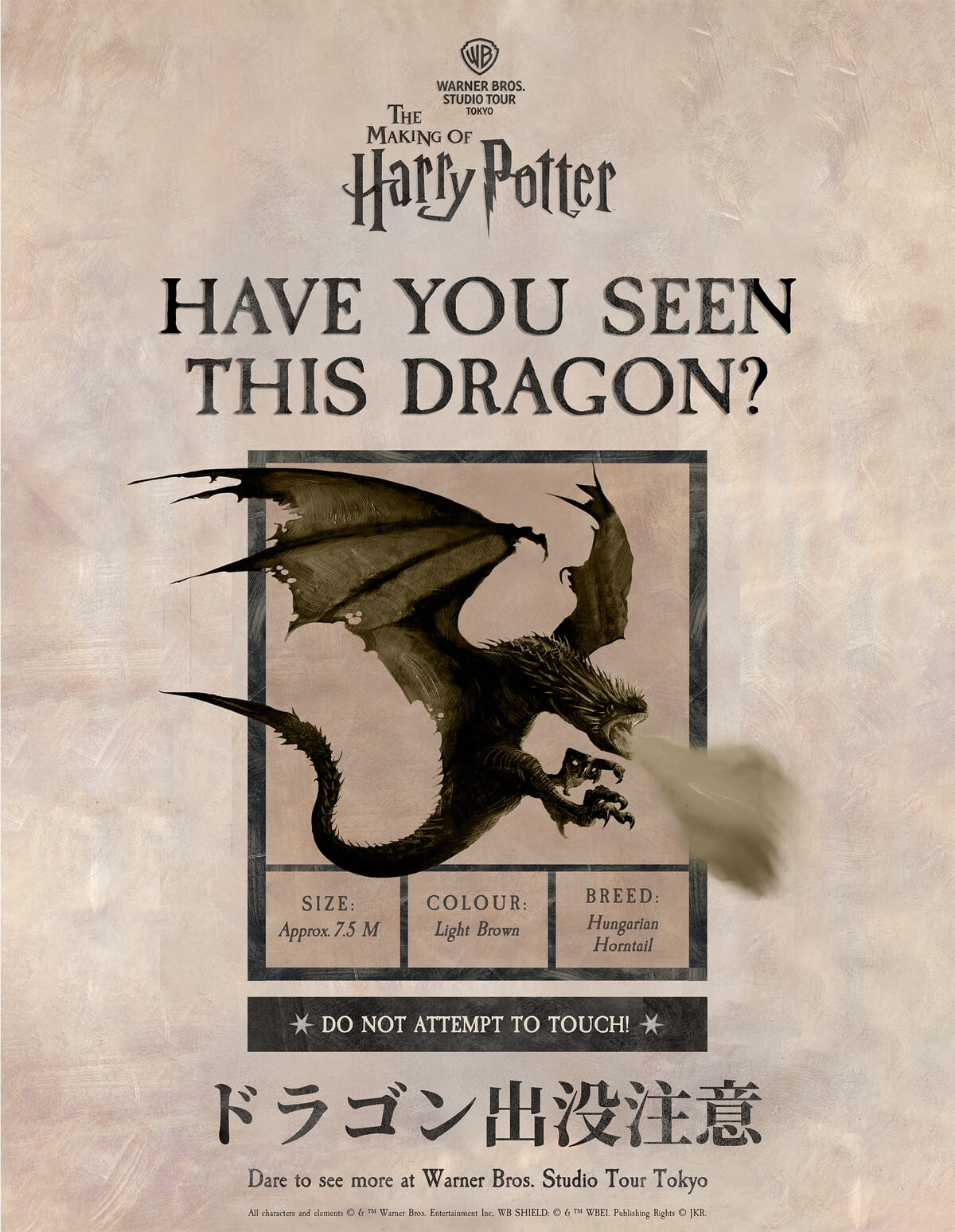 また、現在開催中の特別企画「炎のゴブレット」でも新たに展示されたドラゴン「ハンガリー・ホーンテール」がスタジオツアー東京から飛び出して街中に登場する「特別企画『炎のゴブレット』開催記念 ドラゴン出没イベント」が実施されます☆