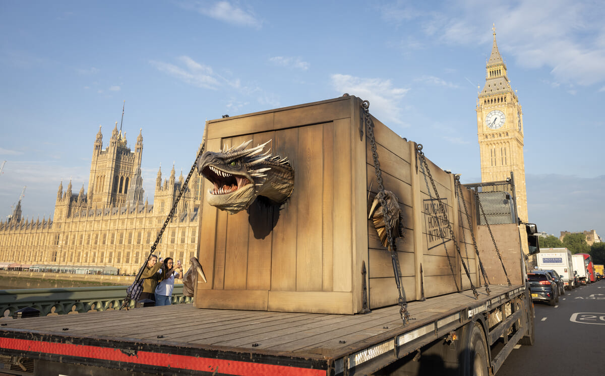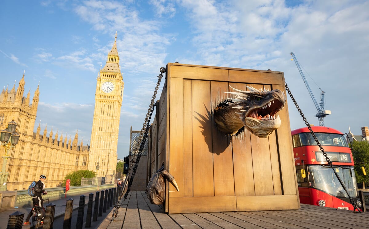 全長約7.6メートルもの大きさのドラゴンは、アニマトロニクスによって頭や目、口が動き、咆える姿がまるで映画から飛び出してきたような迫力で、英国各地に現れたこのドラゴンに多くのファンが足を止め、多くの話題を集めました。