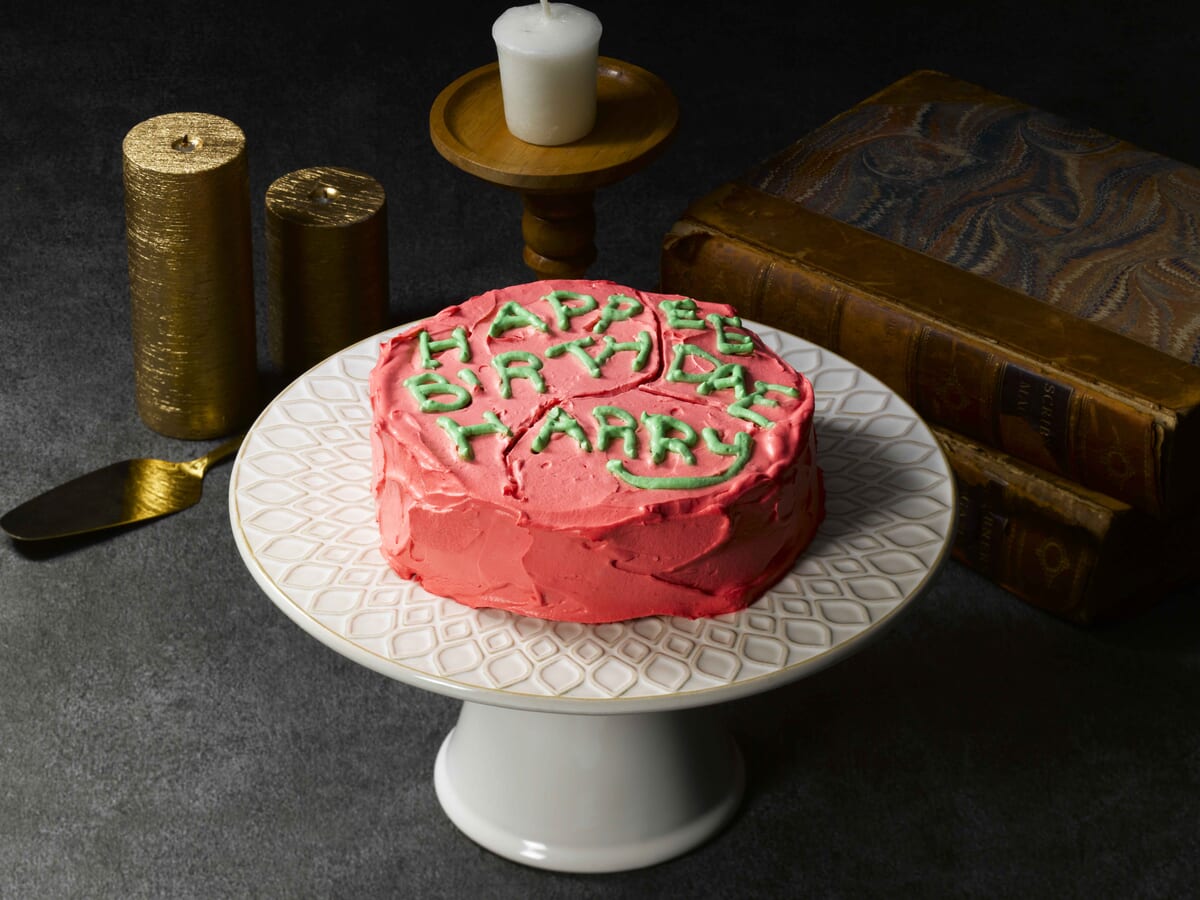 3~4人でのシェアにピッタリなサイズのケーキはチョコレートスポンジでフランボワーズクリームをサンドし、映画に登場した「ハリー・ポッター」にとって初めてのバースデーケーキを再現しています。