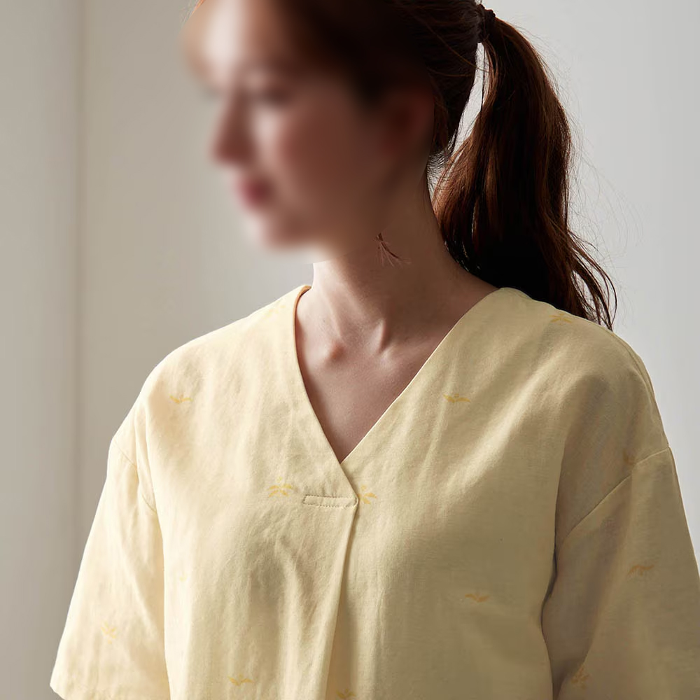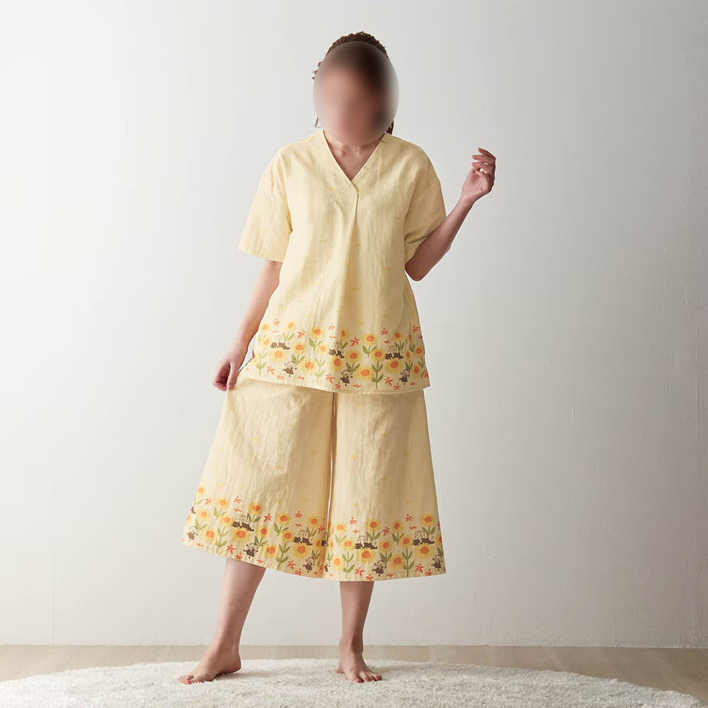 ムーミン ダブルガーゼパジャマ イエロー Vネック