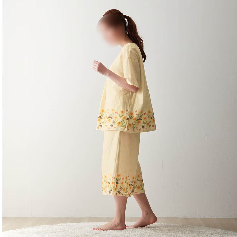 ムーミン ダブルガーゼパジャマ イエロー 着用イメージ サイド