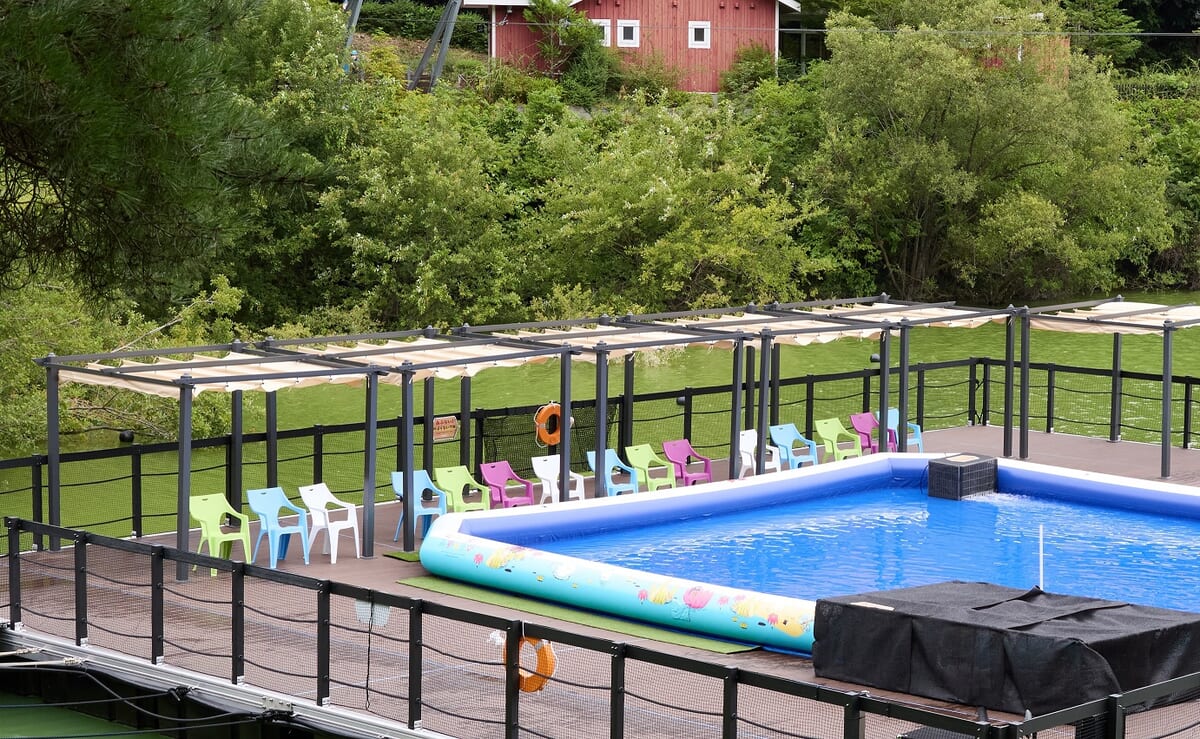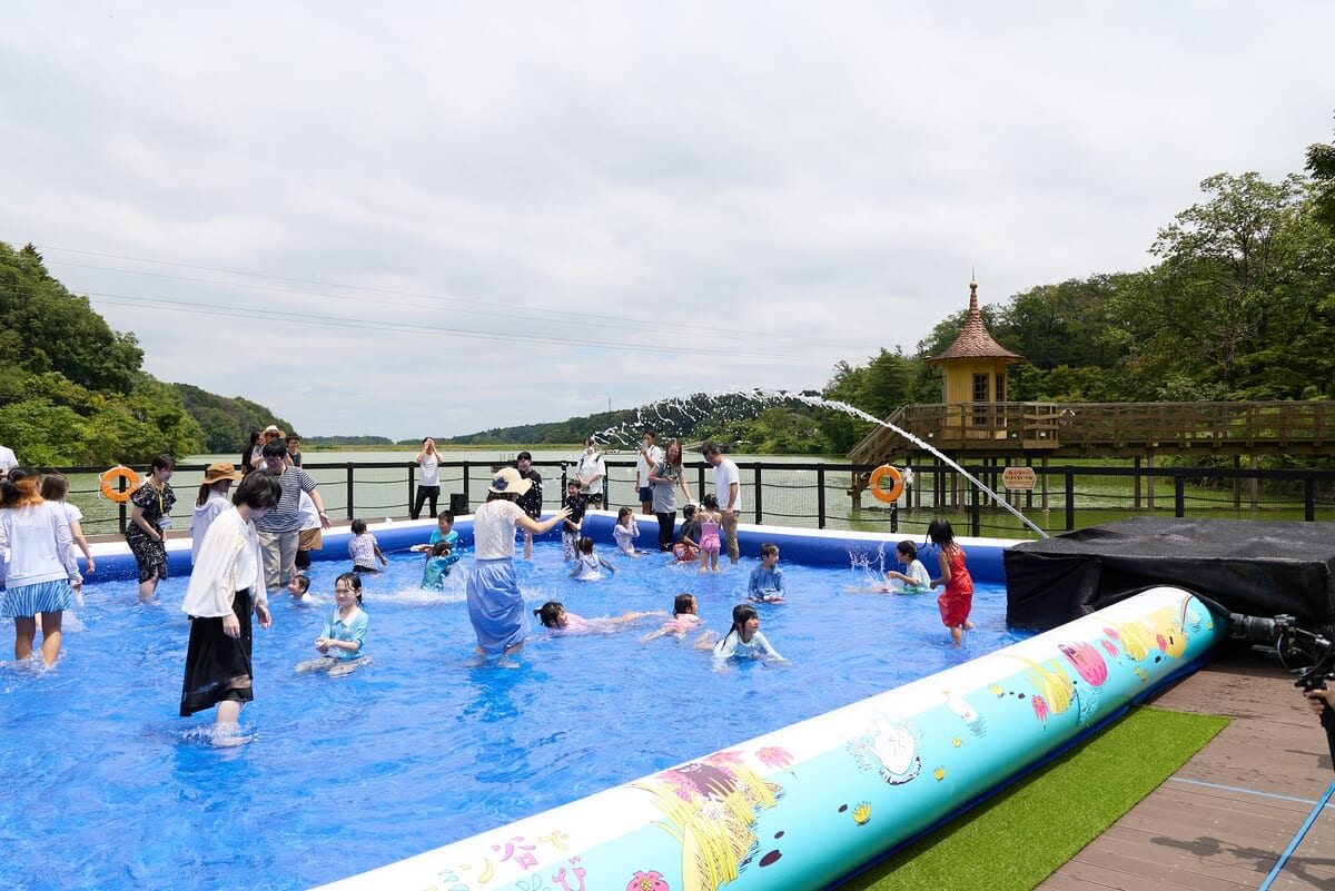 「湖上のテラス」上に登場した、10m×10mサイズの巨大プール「ムーミン谷のじゃぶじゃぶプール」はシーズナルイベントを拡充させる重要なスポット。
