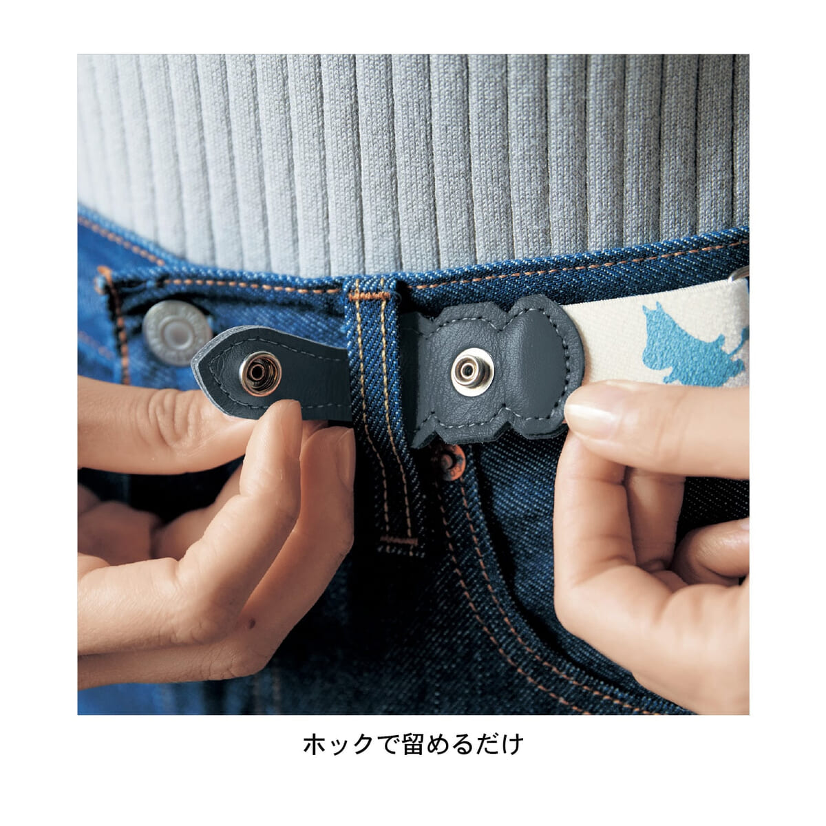 メルメゾンが展開する、ベルトをつけたまま脱ぎはきラクラクなゴムベルトに「ムーミン」デザインが登場。
