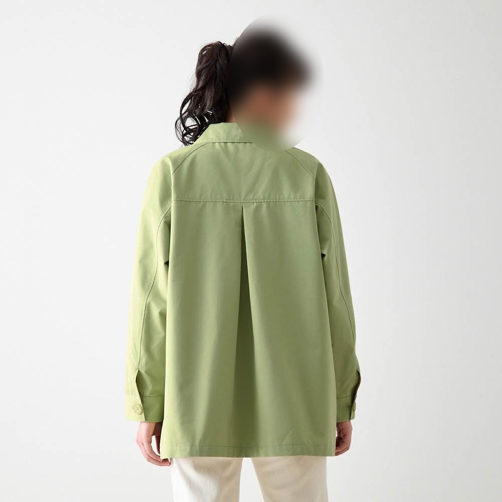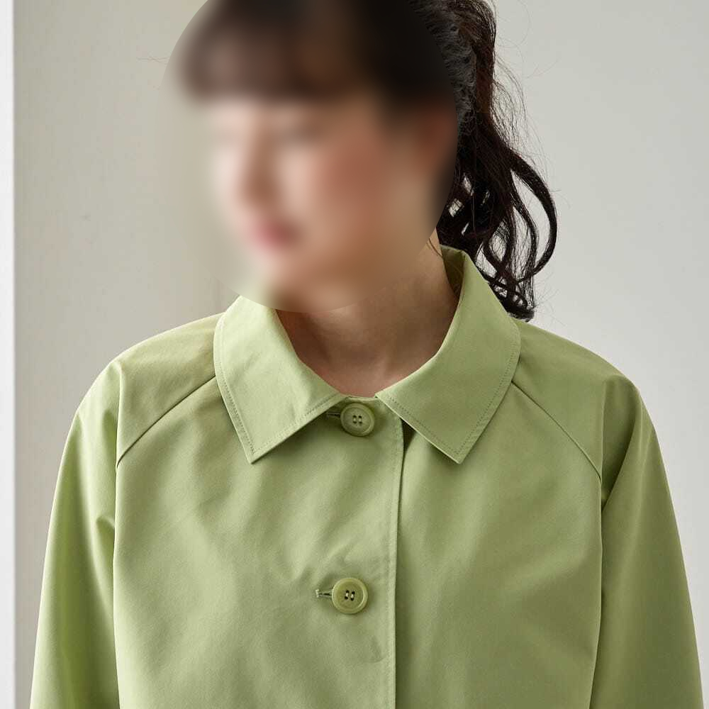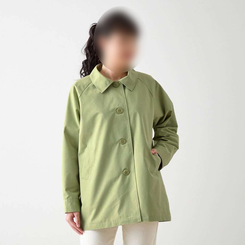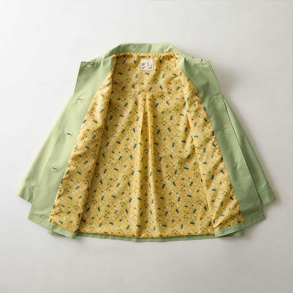 ピスタチオグリーンが明るい印象にしてくれる、ベルメゾンの「ムーミン」裏地がかわいいショートコート。