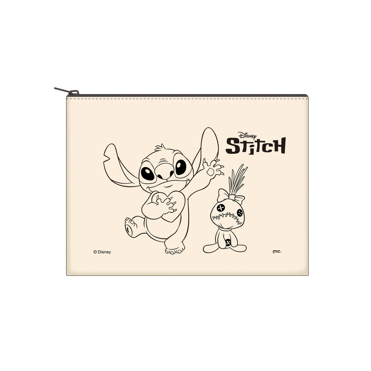 ハートを抱えた「スティッチ」と、お座りポーズの「スクランプ」に色を塗ることができるポーチ。