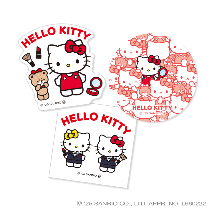 「ハローキティ」と化粧グッズの組み合わせが、かわいいステッカーです☆