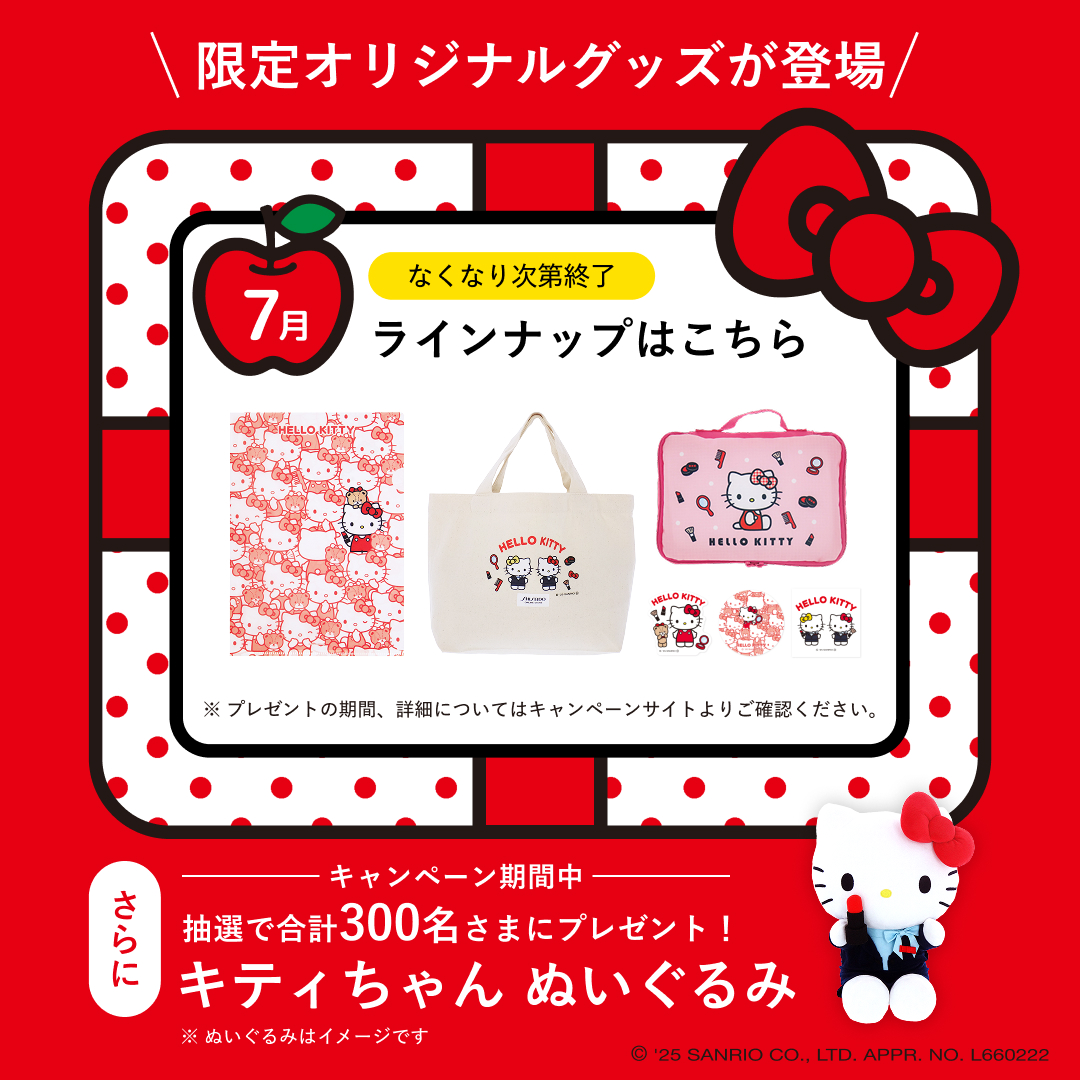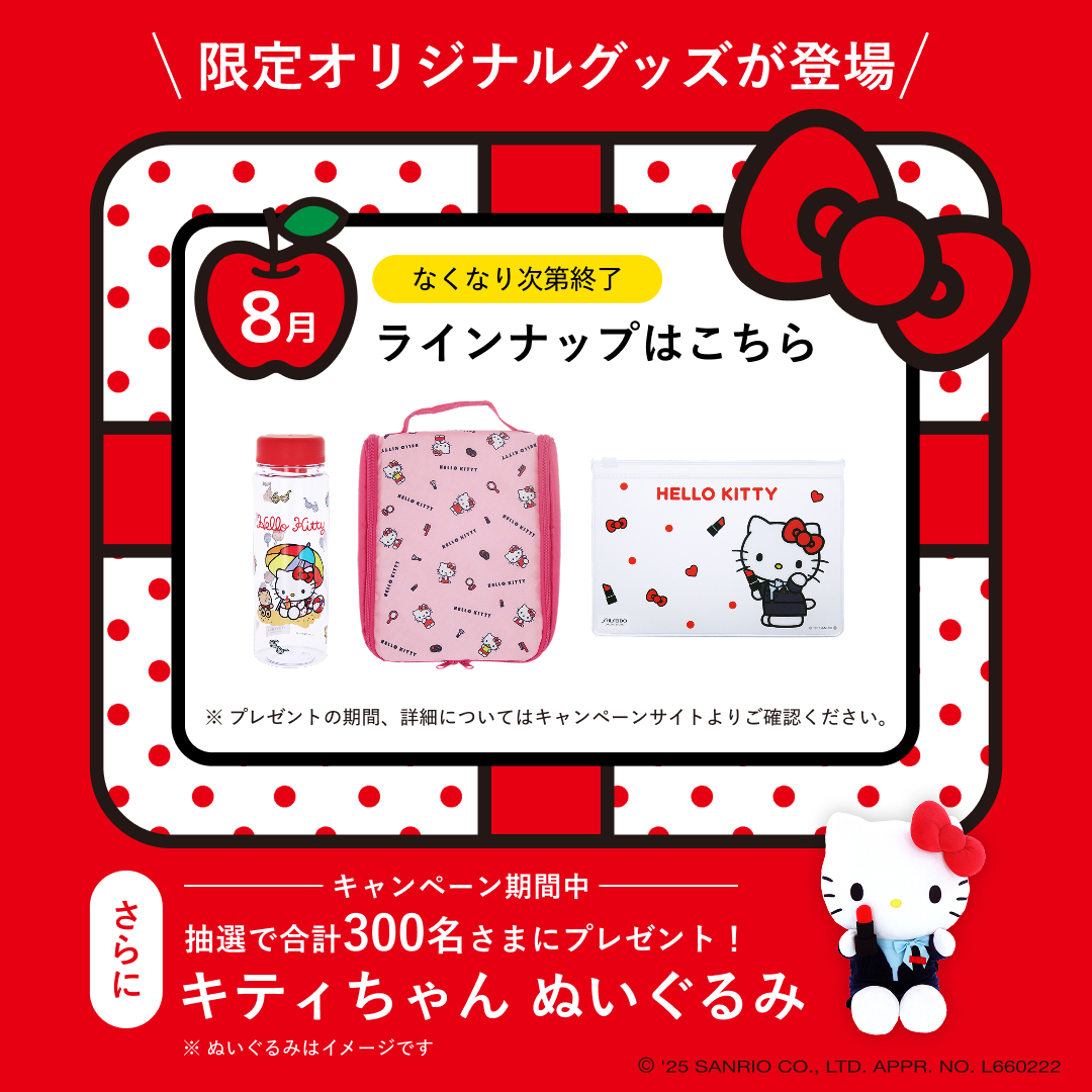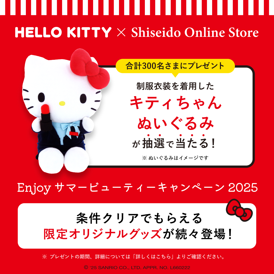 資生堂オンラインストアでは、「ハローキティ」とのコラボレーションキャンペーン「Enjoy サマービューティーキャンペーン2025」を実施中。