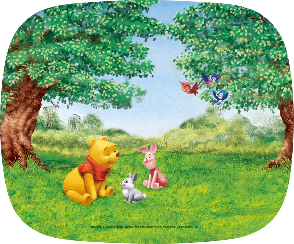 「くまのプーさん」と「ピグレット」が、ウサギや小鳥たちと仲良く過ごす様子に癒やされます。