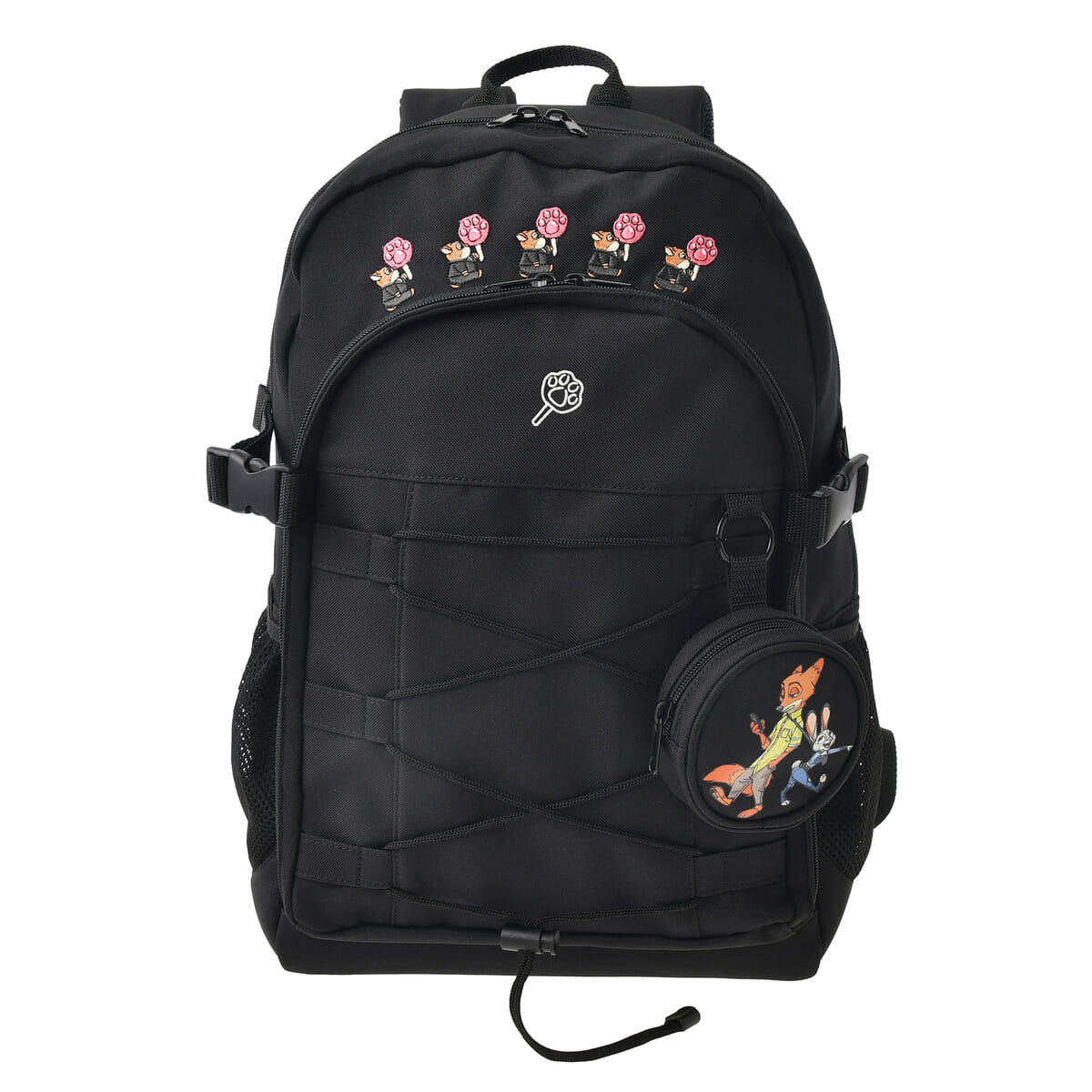 「ジュディ・ホップス」と「ニック・ワイルド」をプリントしたサークル形ポーチ付きバックパック。