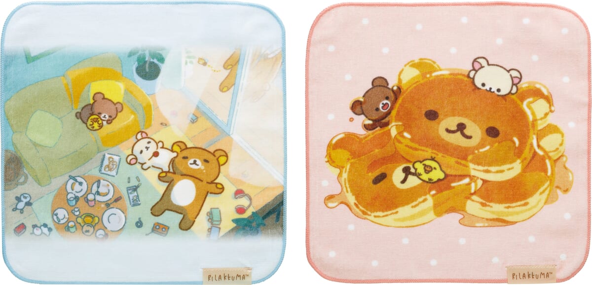 お昼寝イラストと、大きな「リラックマ」型のホットケーキに「コリラックマ」たちがかぶりつくイラストの2種類がラインナップ。