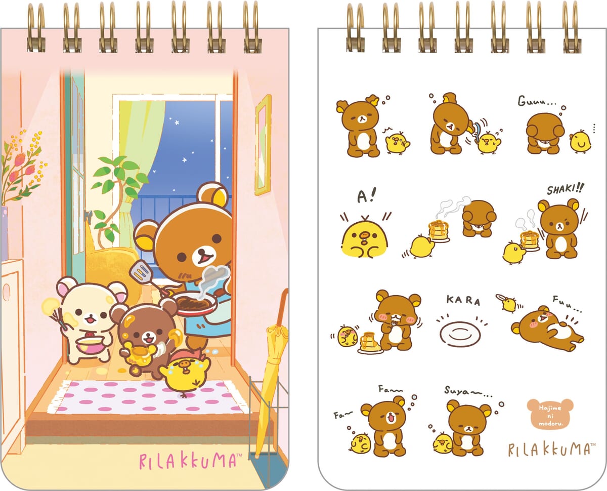 「リラックマ」たちが玄関でお迎えしている様子やのんびり昼下がりでお昼寝している様子、「リラックマ」のモーニングルーティーンなどのかわいいデザインがあしらわれた文具や縫製品などが多数ラインナップされます。
