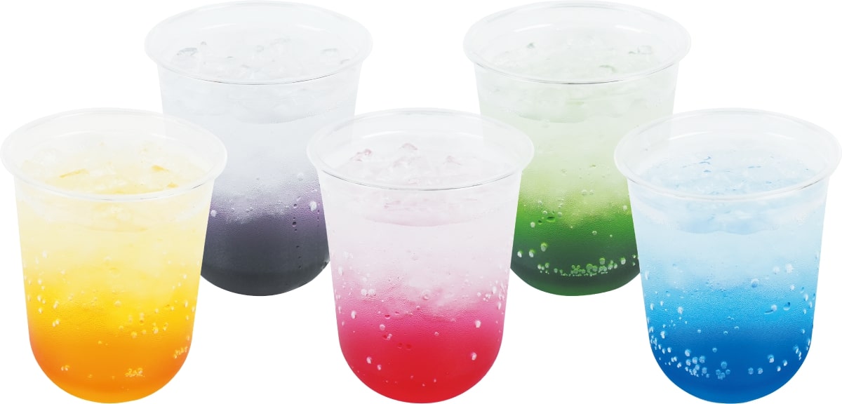 ・クロミのマジカルソーダ(ブルーライチ/ピンクレモン/パープルメロン/イエローベリー/グリーンパイン)各600円(税込)