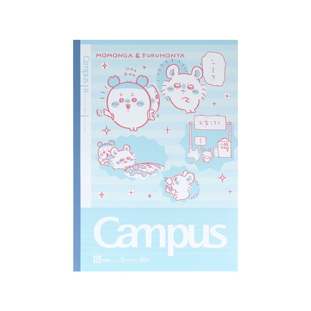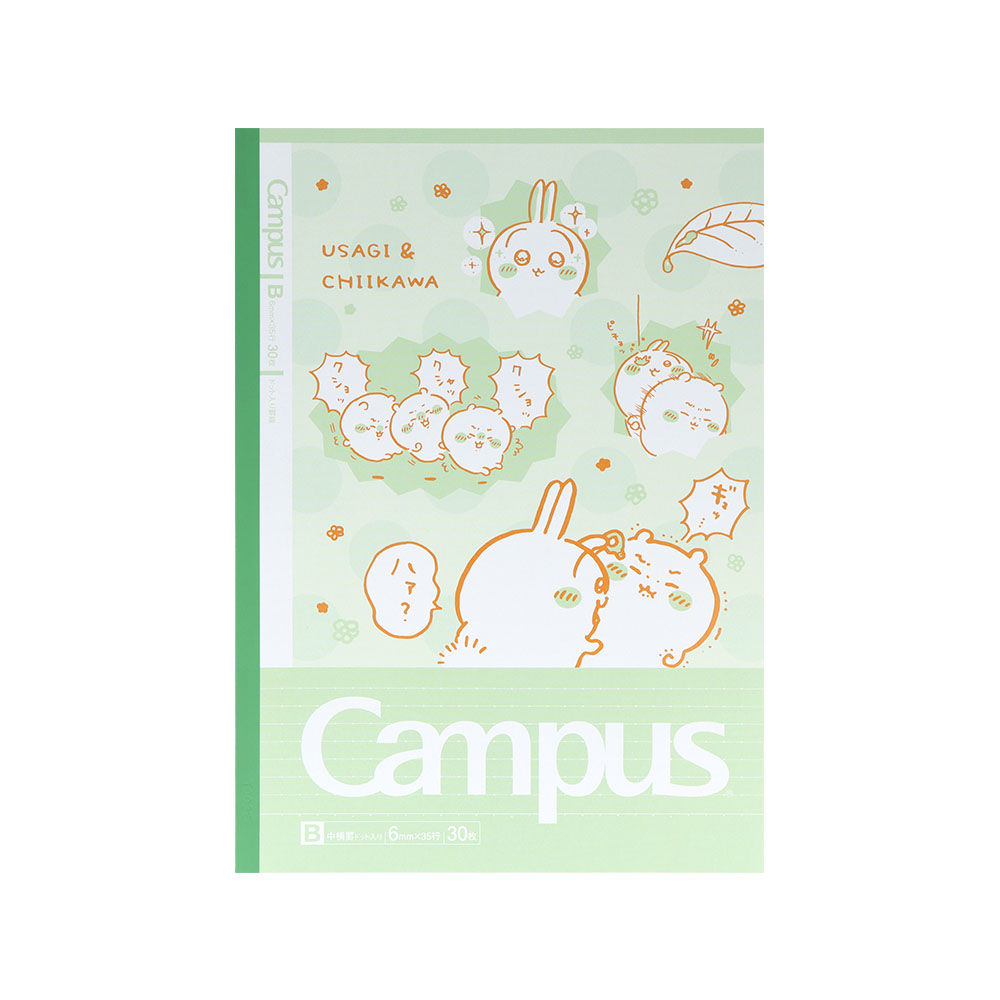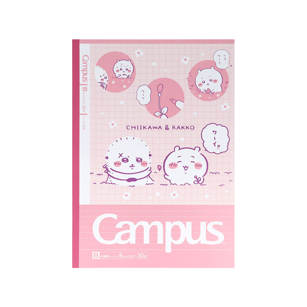 シンプルな罫線のキャンパスノートに「ちいかわ」たちをかわいくあしらったデザインです☆