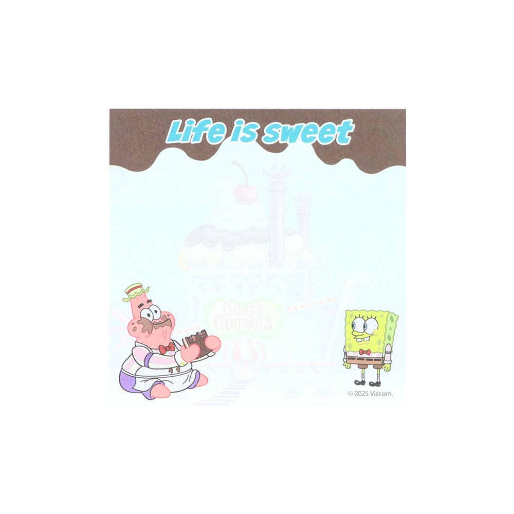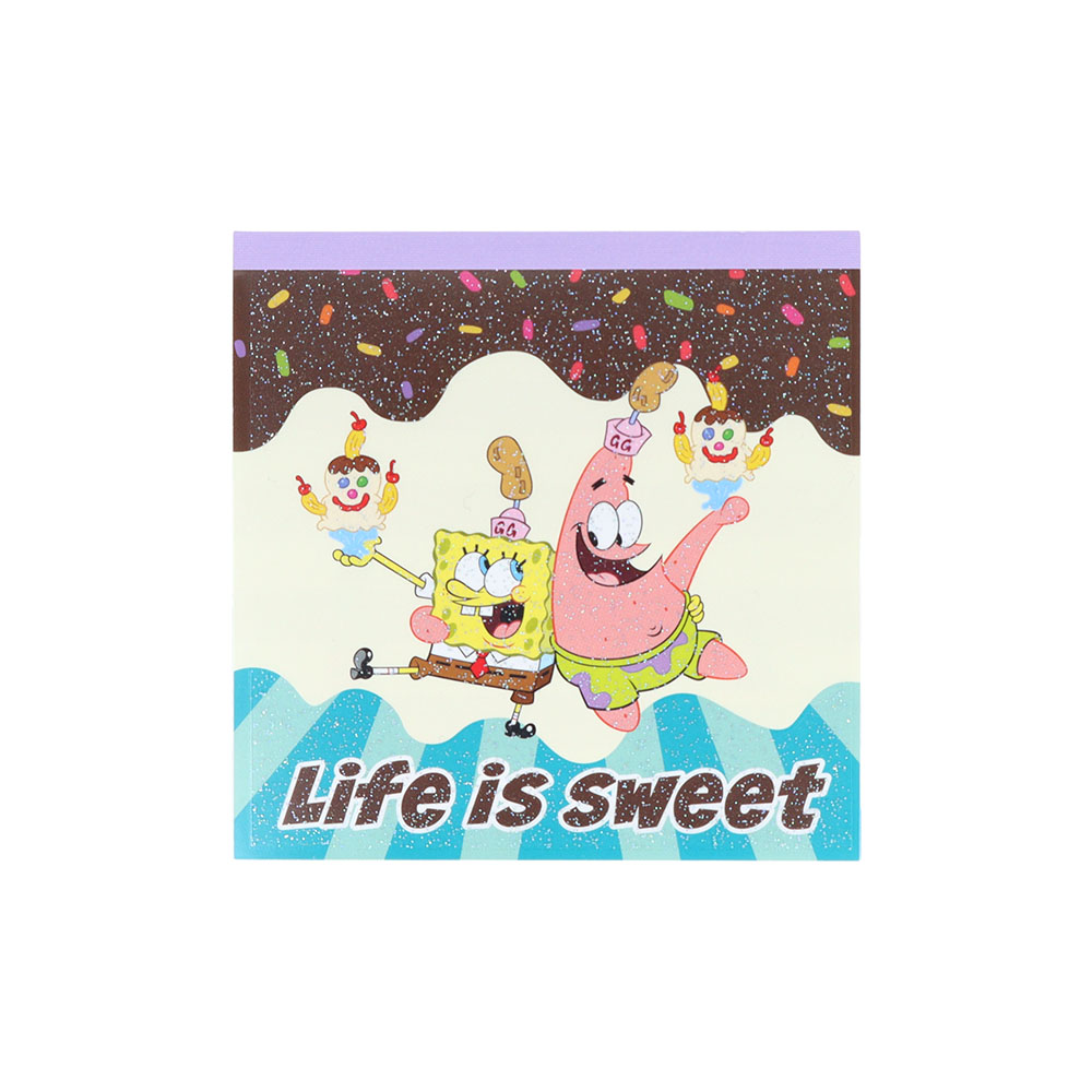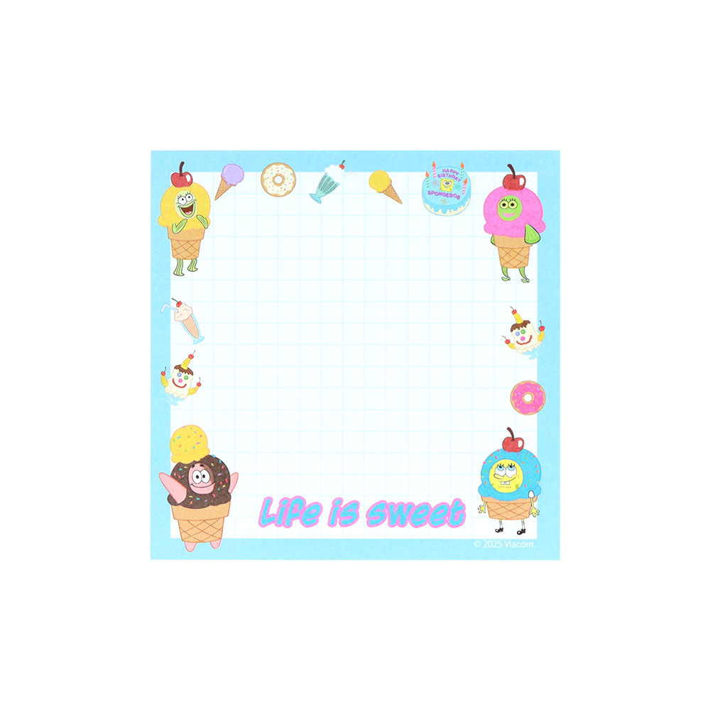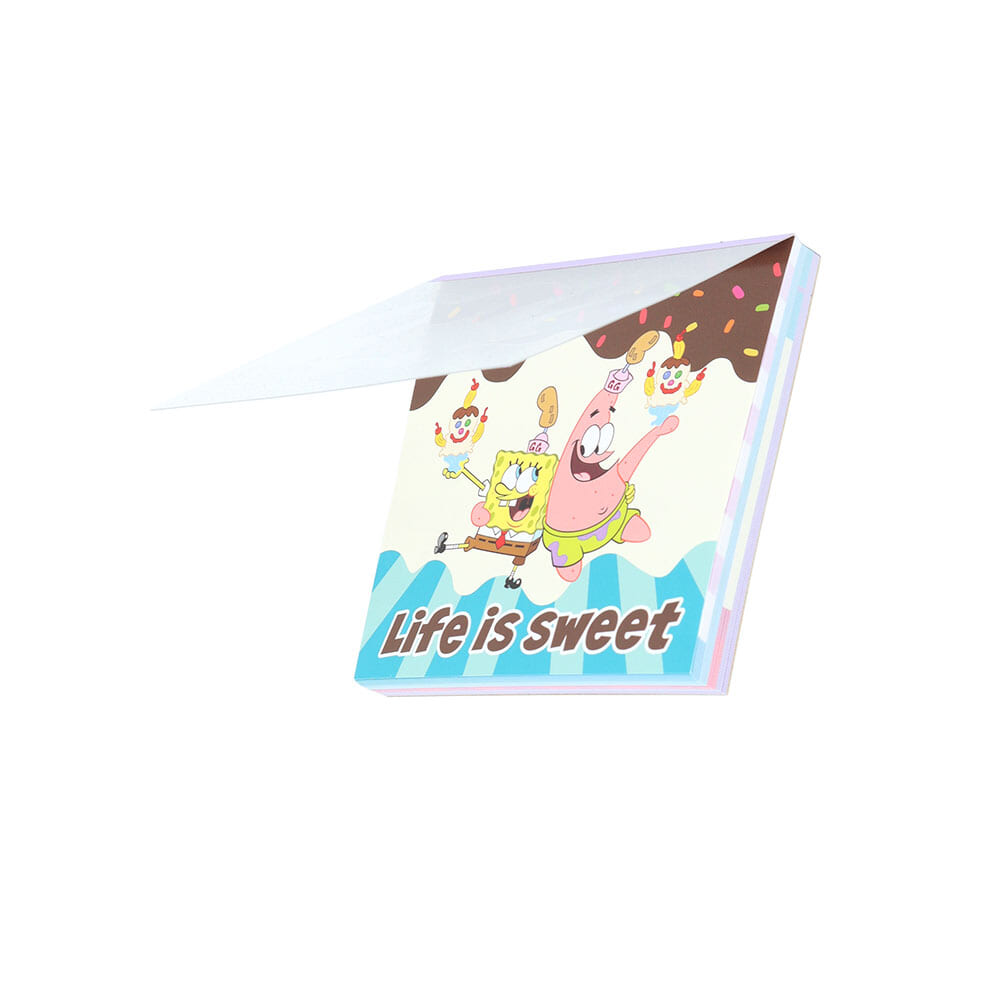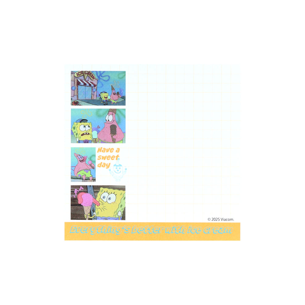 表紙にアイスクリームの入ったグラスを掲げる「スポンジ・ボブ」と「パトリック・スター」を描いたスクエアメモ。