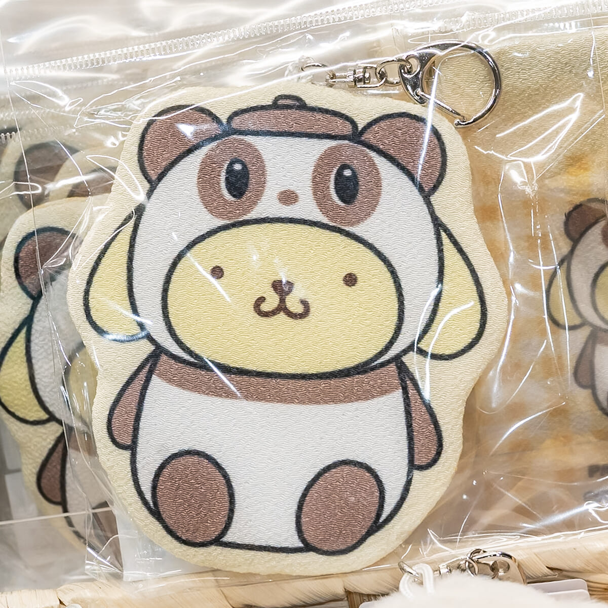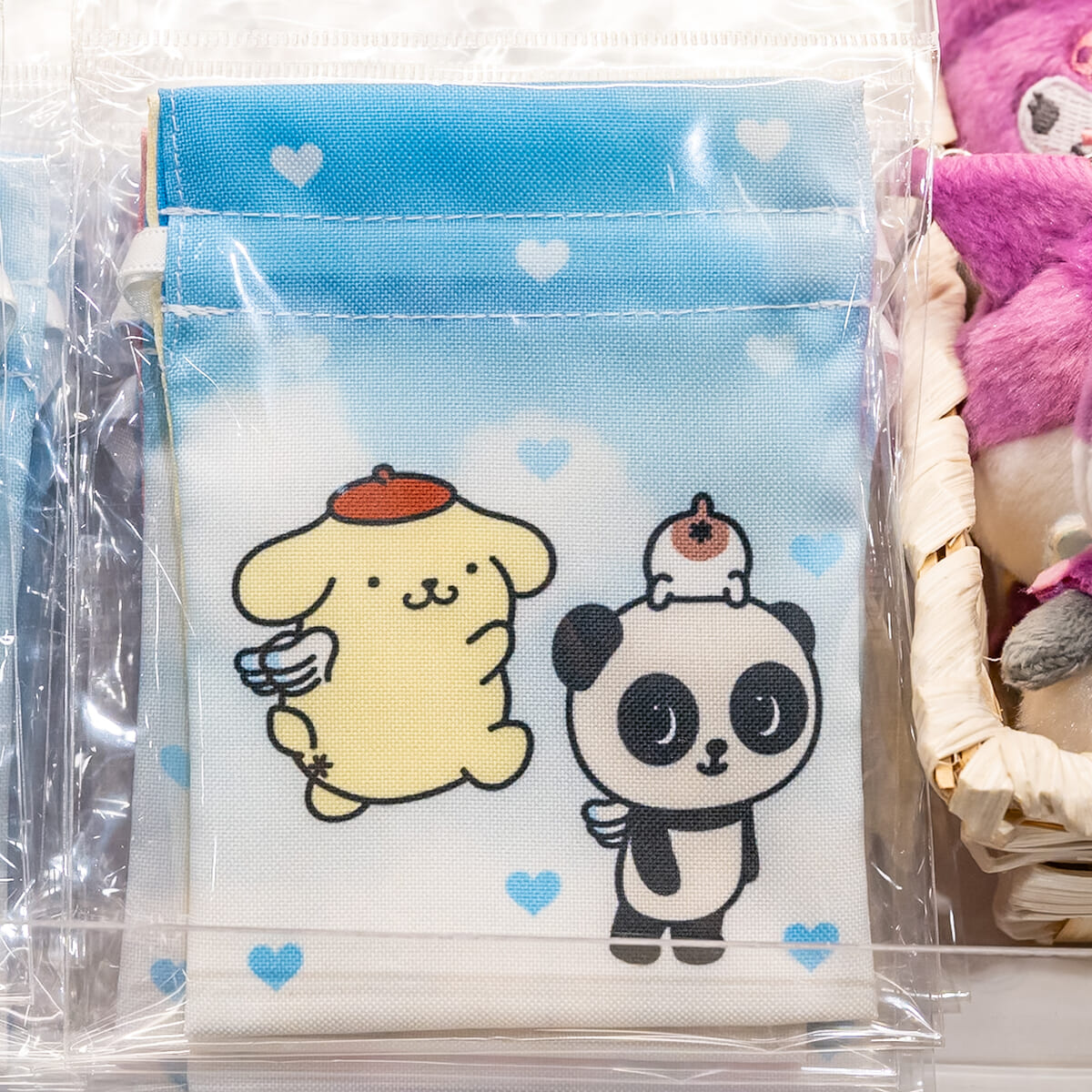 サンリオキャラクターズになりきったパンシェルの顔をそのままデザインしたミニポーチ。