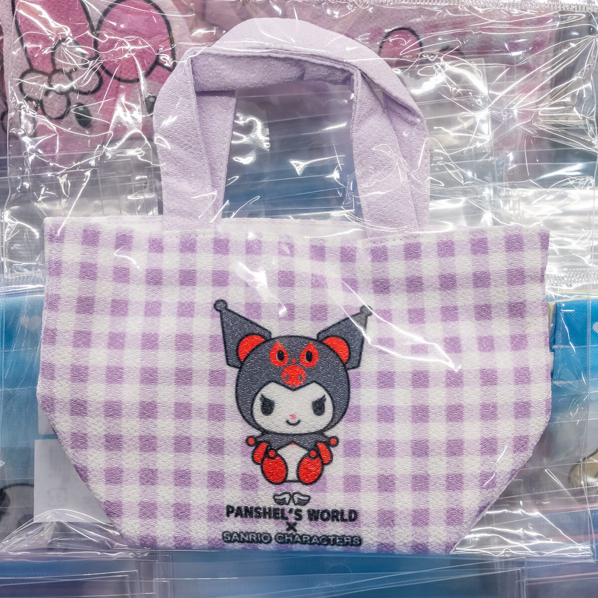 チェック柄とキャラクタープリントが組み合わさったデザインで、持つだけで華やかな印象になります。