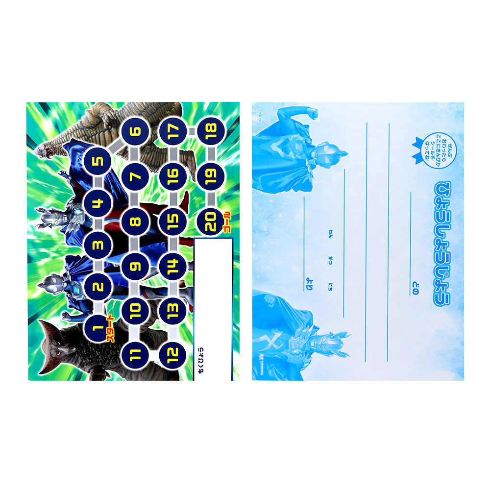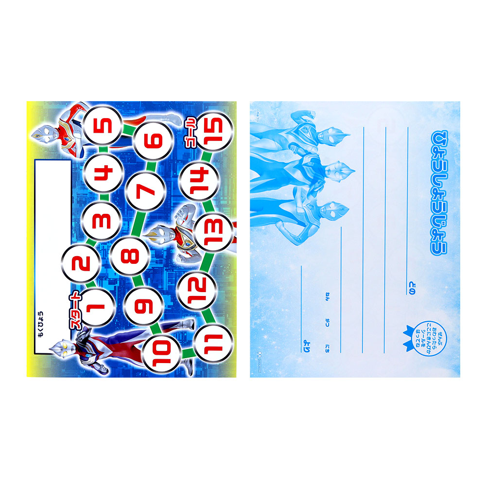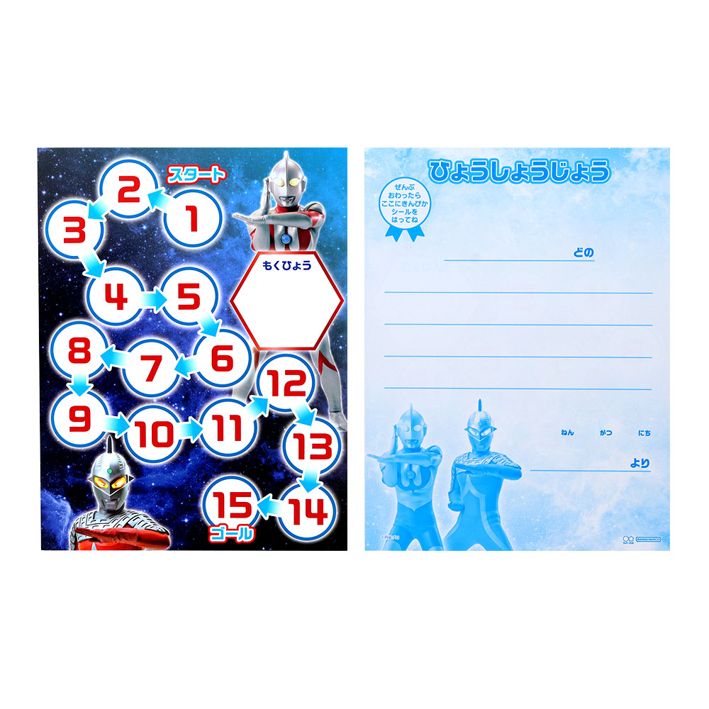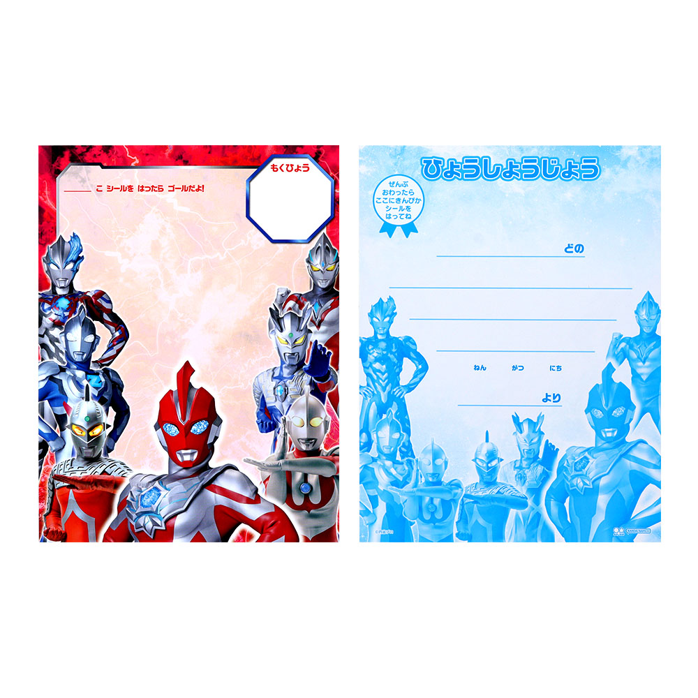 目標を達成するごとにシールが貼れる台紙には「ウルトラマンオメガ」や