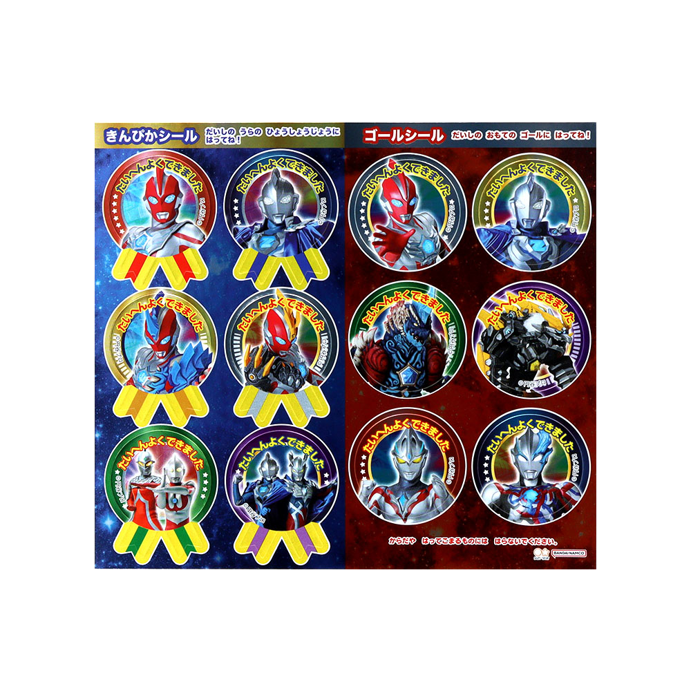 ウルトラヒーローやウルトラ怪獣たちをプリントしたよくできましたシールは5枚、