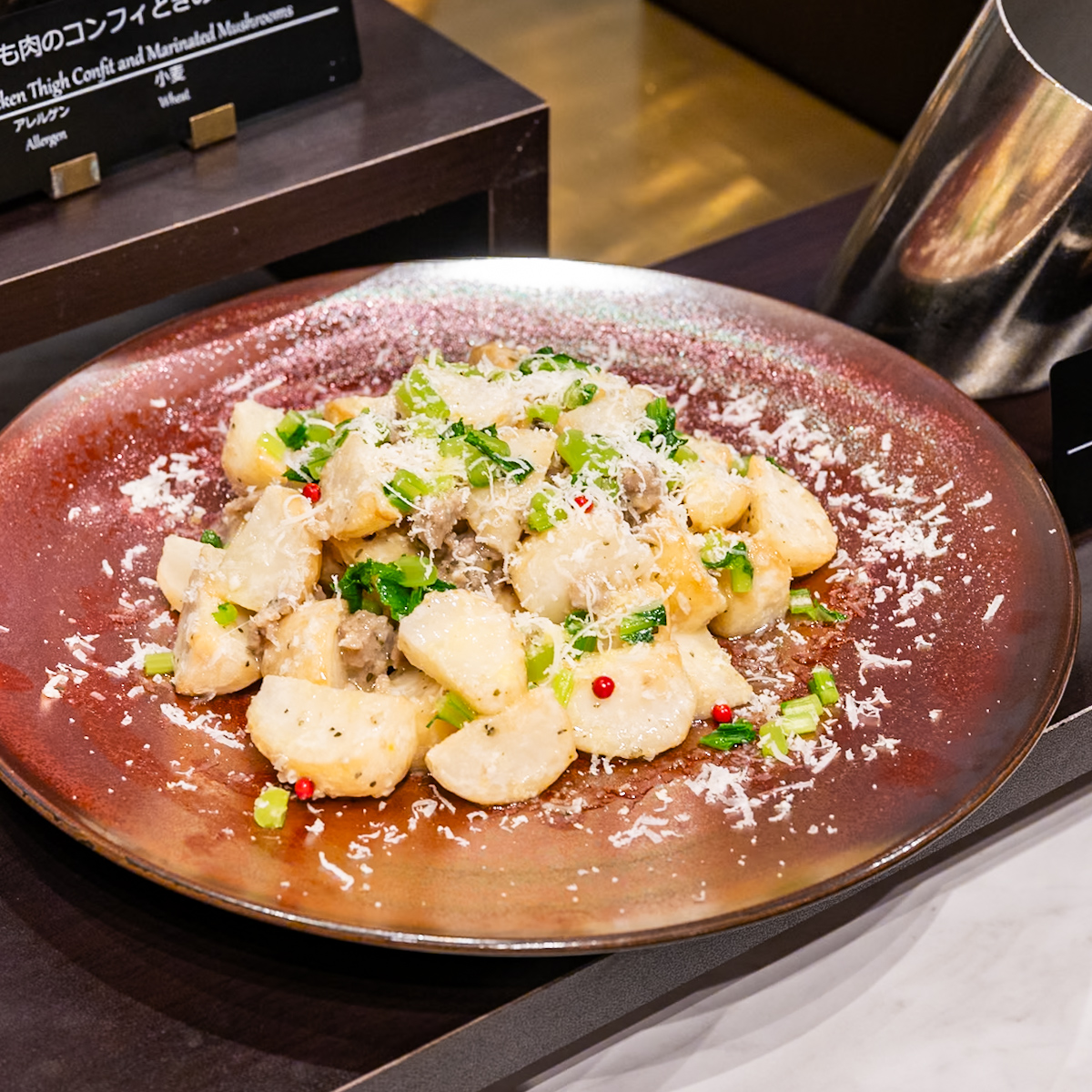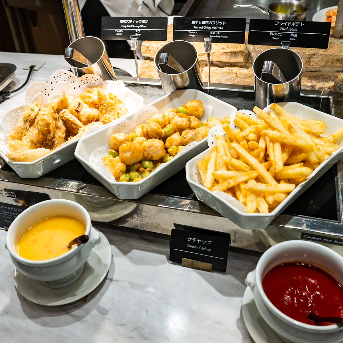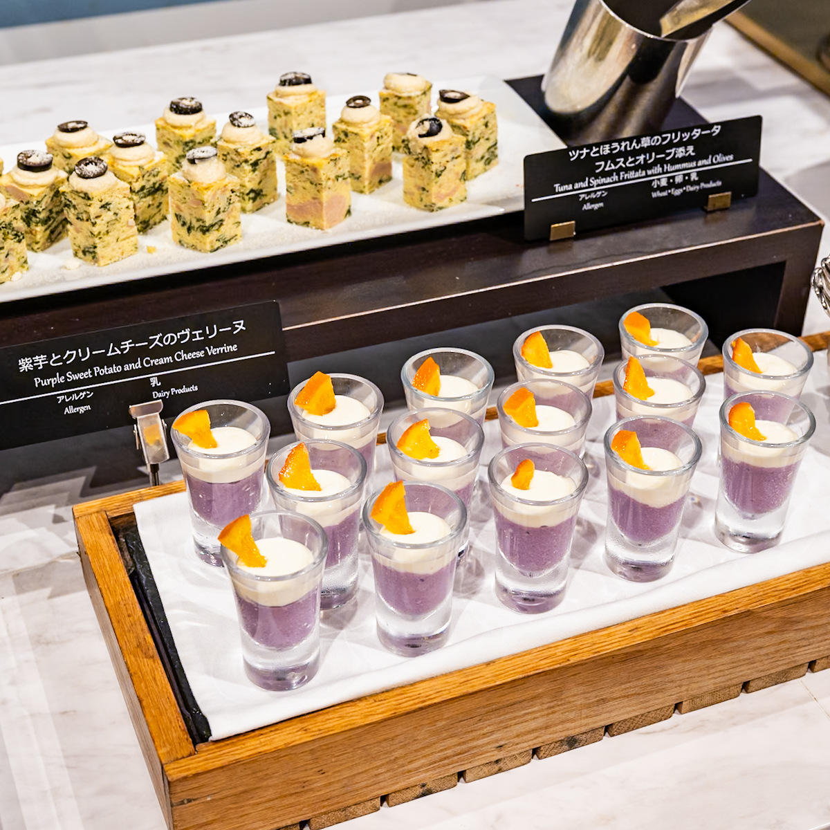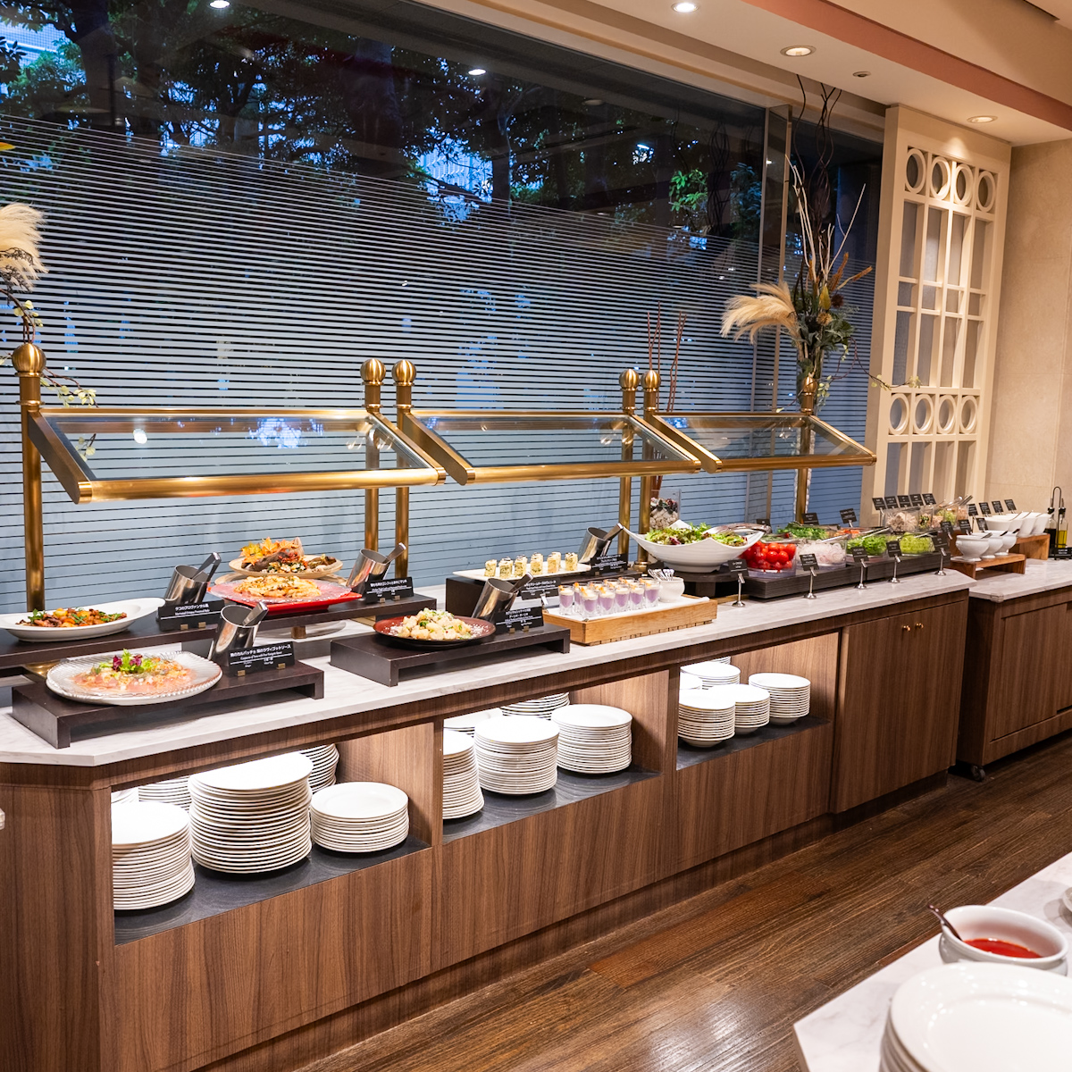 ブッフェには、シェフが目の前で仕上げるライブキッチン、旬の素材をふんだんに使った特別メニューをラインナップ。