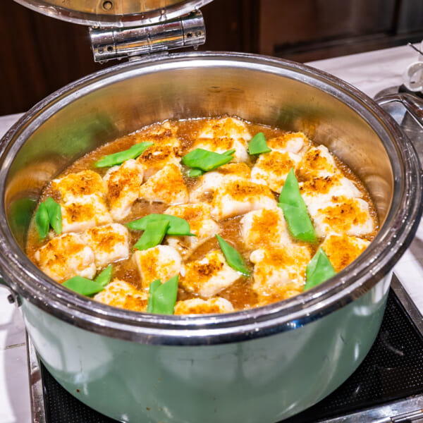 ディナー限定「海老の鉄板焼き 魚介と豆腐のムース ~アメリカンソース~」