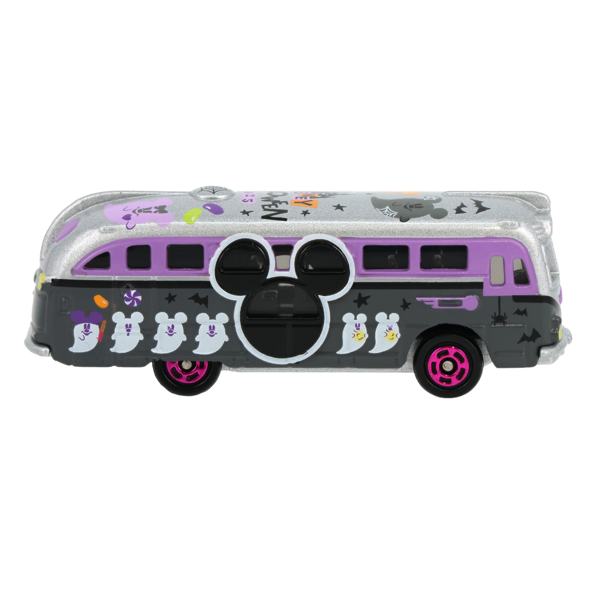 ゴーストたちがデザインされた、パープルカラーのバスです。