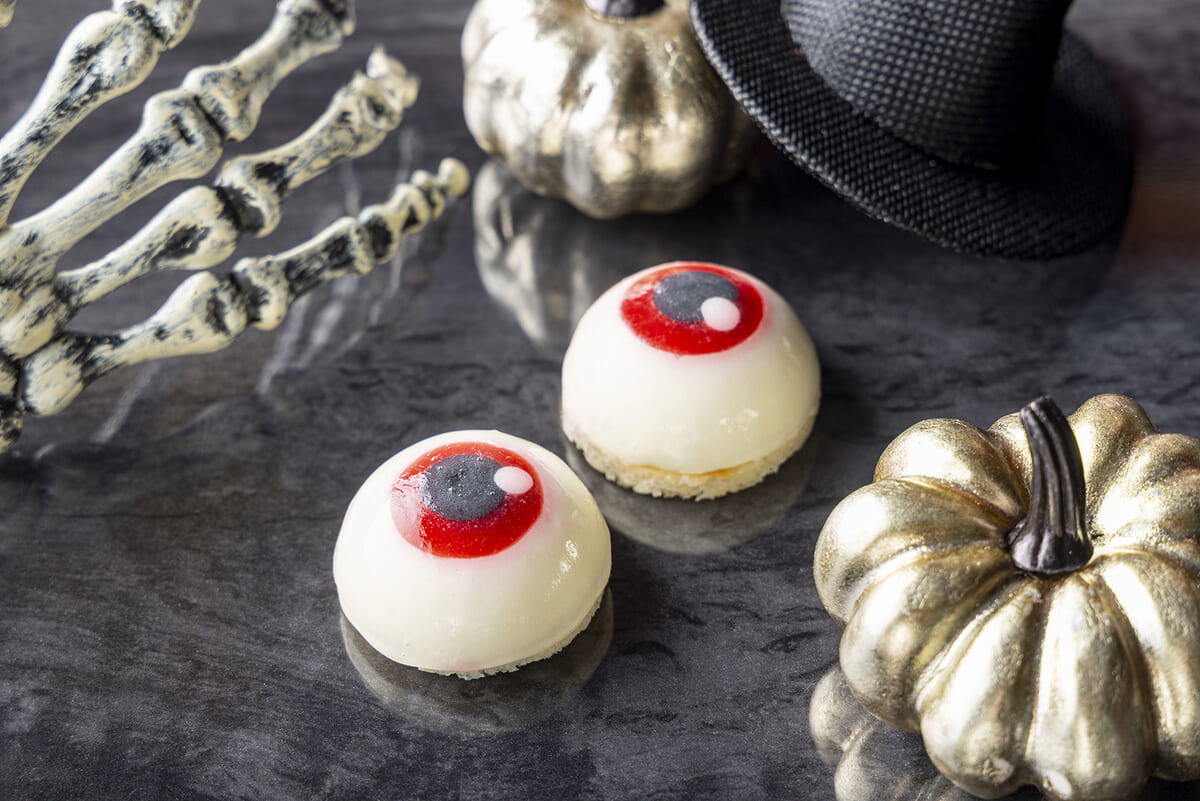 つぶらな瞳でこちらを見つめる「目玉ムース」は、その名の通りアイキャッチーなスイーツ。