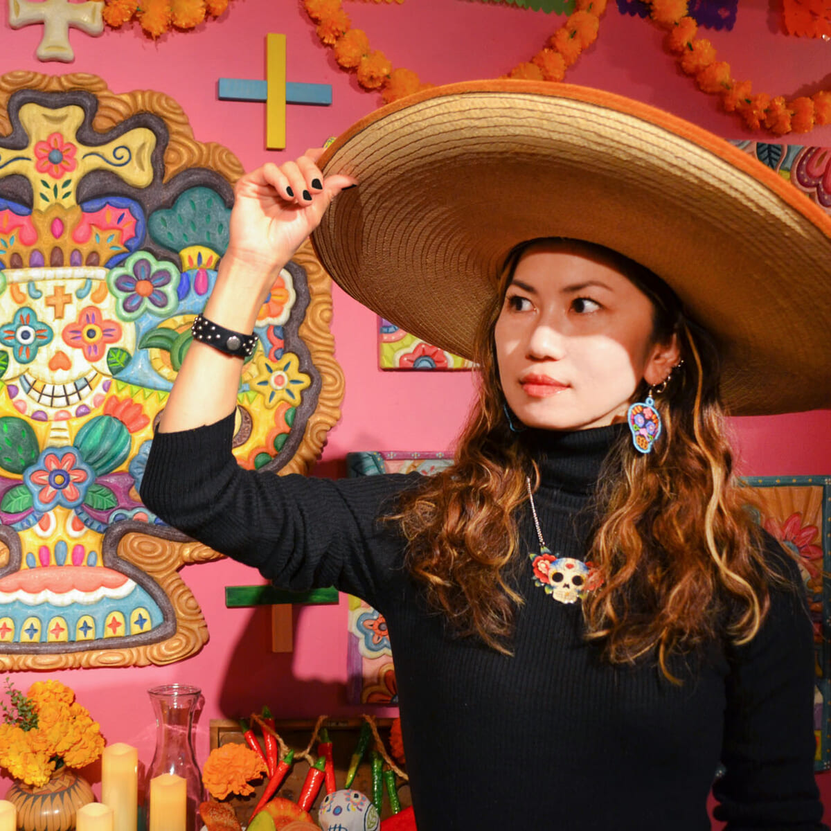 メキシコの伝統風習「死者の日」を、半立体で描き続けるアーティスト飯坂千亜希氏。