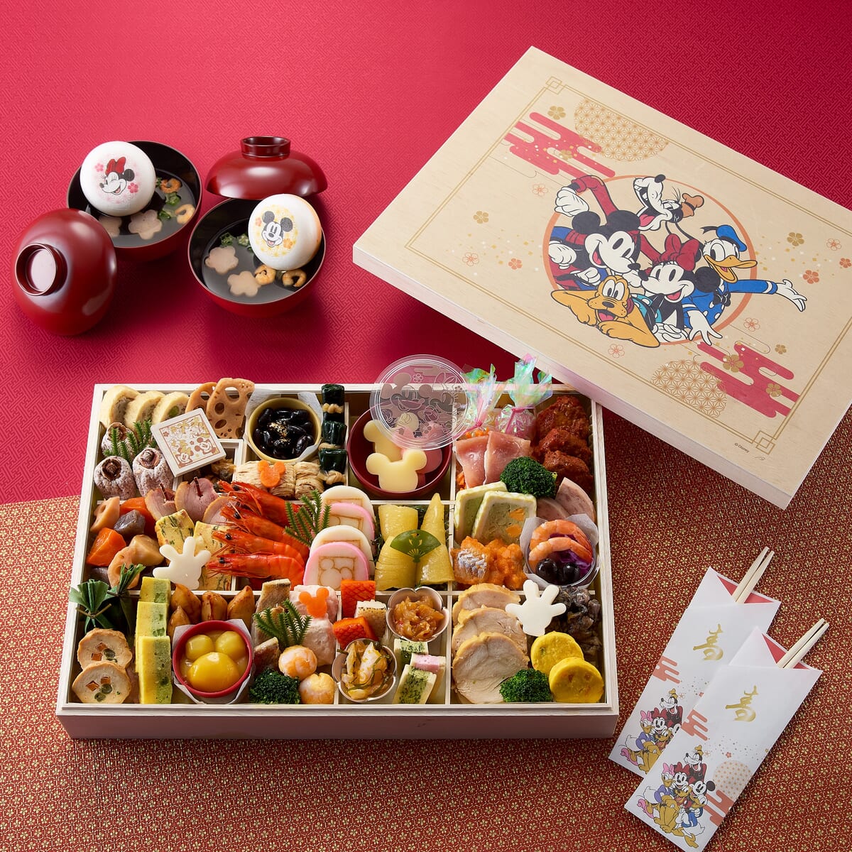 2026年お正月版では、2025年のアンケートで好評だった最中お吸い物を「ミッキー&フレンズ」と「くまのプーさん」に付属し、「ファンタジア」にはミッキー型の小皿を付属。