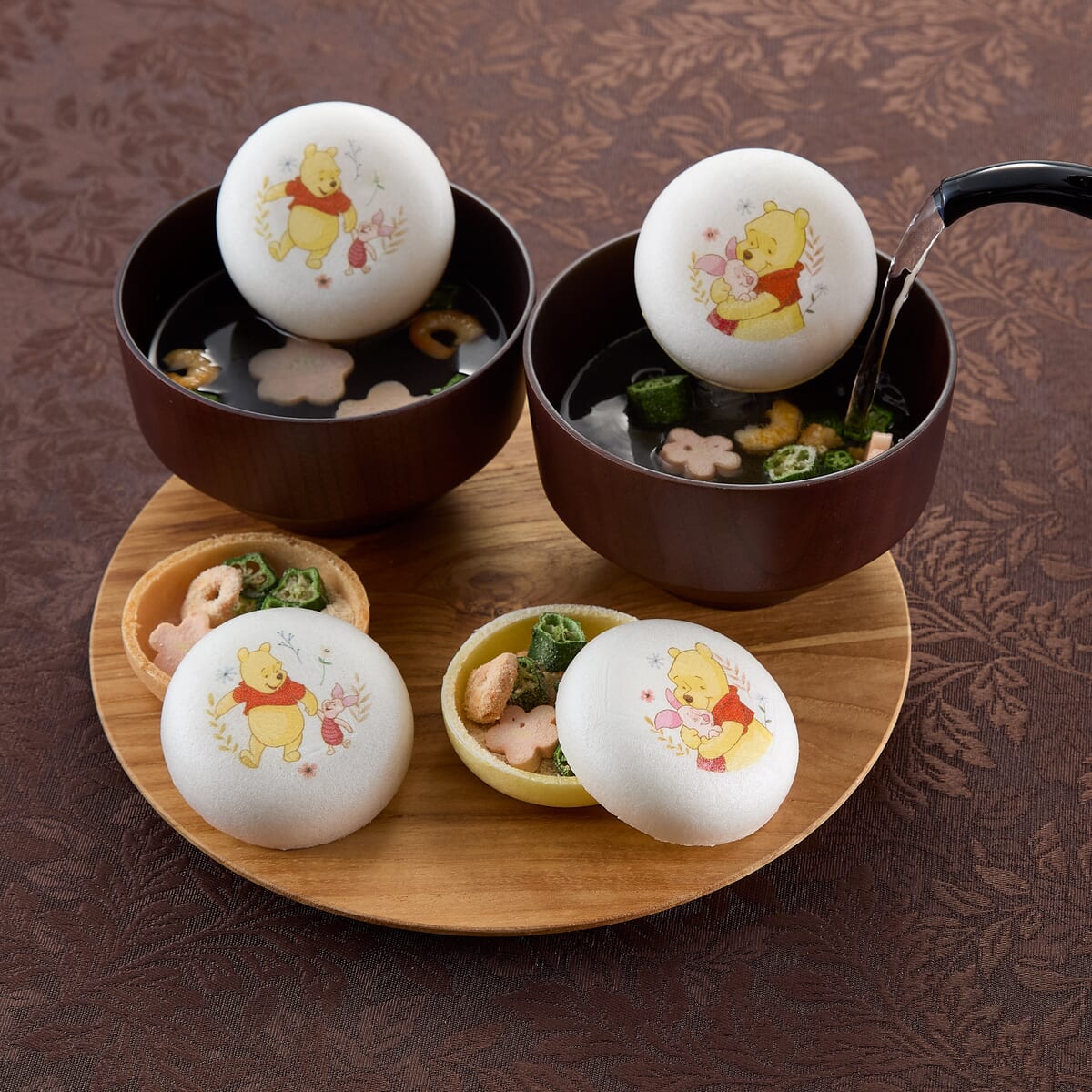 「くまのプーさん」と「ピグレット」の仲睦まじい姿をプリントした最中お吸い物、