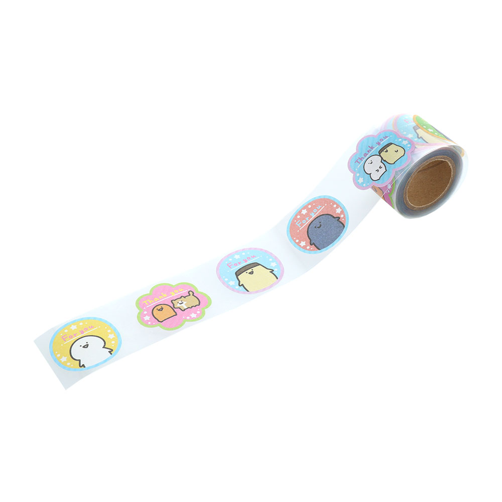 ラベル付けにぴったりなシールが6柄入った、「お文具といっしょ」デザインの「ロールデコレーションシール」