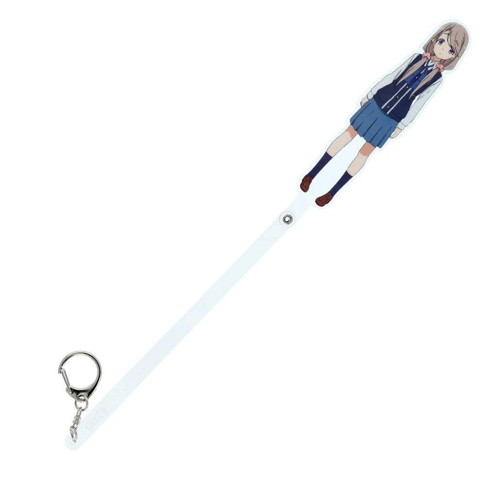 右手を腰に置きポーズをきめる「雨宮さつき」をデザインしたキャラ撮りスティック。