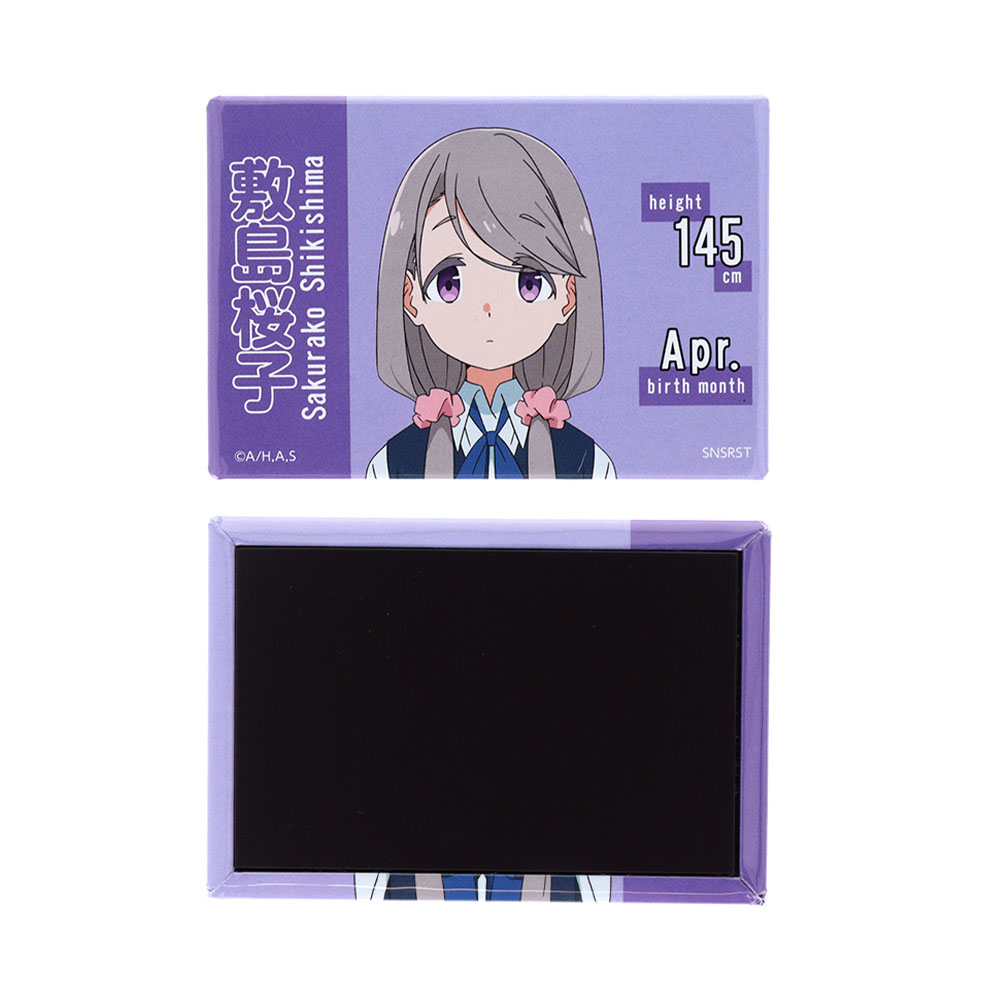 制服姿の「雨宮さつき」をデザインしたスクエア缶マグネット。