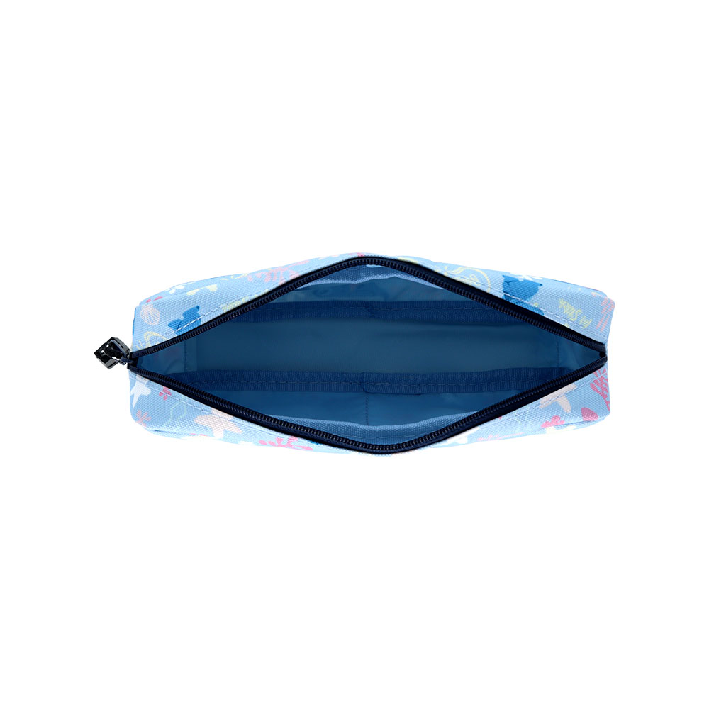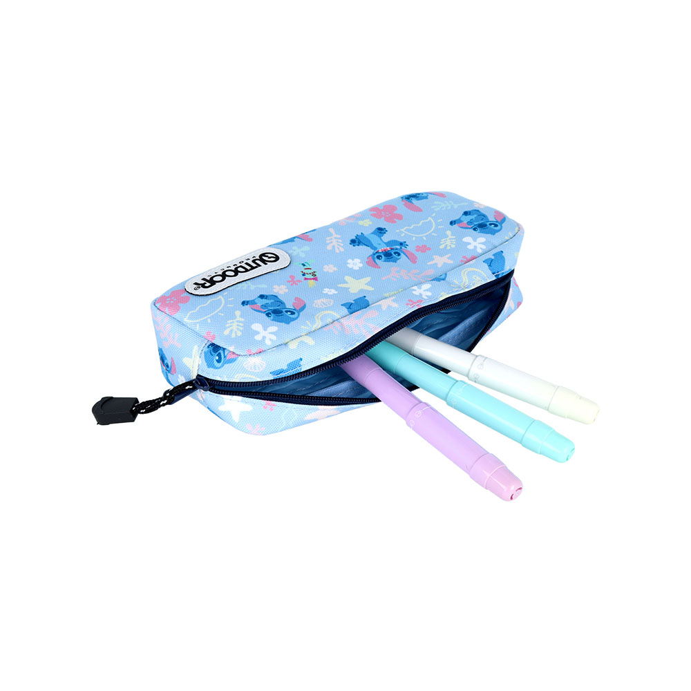 「スティッチ」と「トイ・ストーリー」のアートを総柄でプリントしたペンケース。