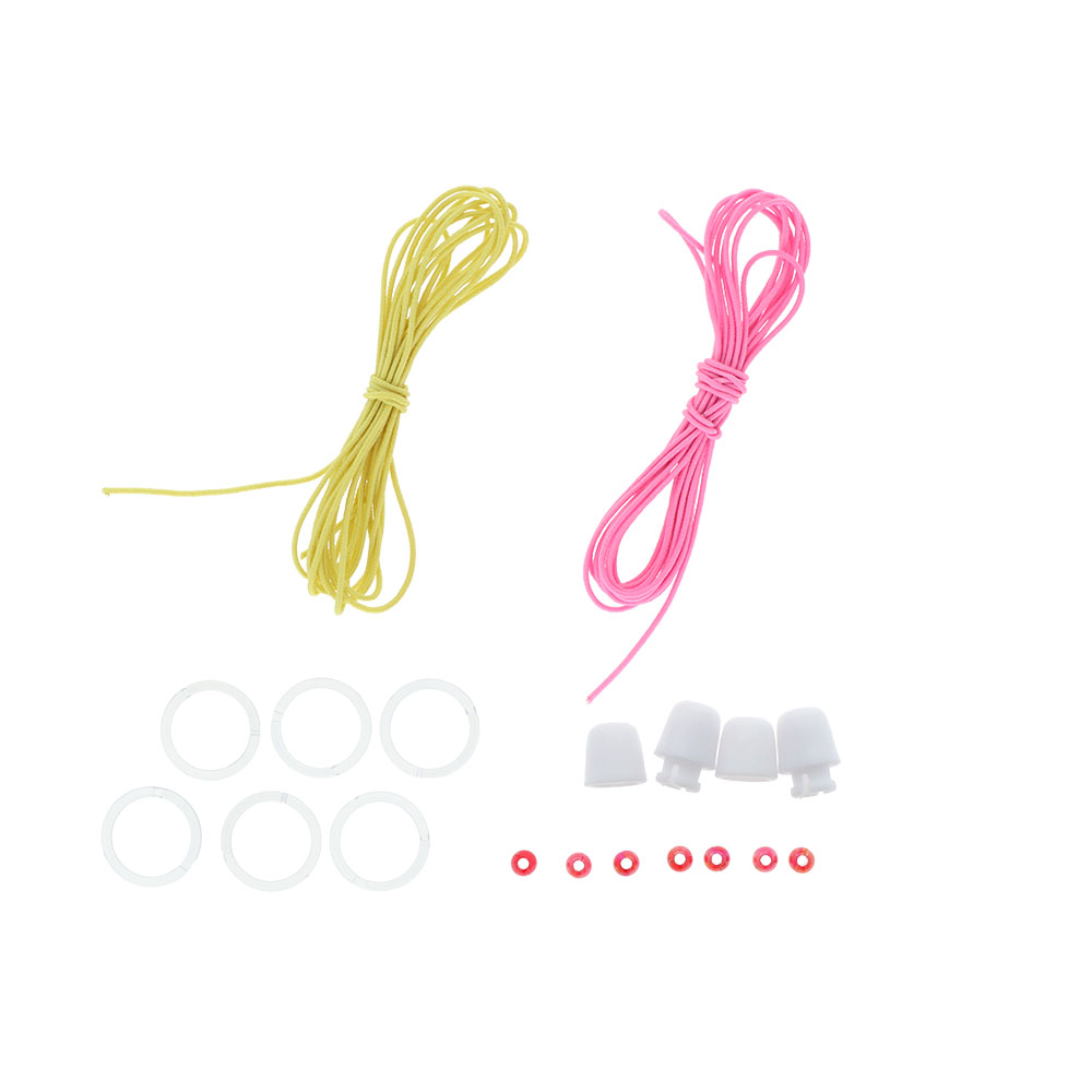 ビーズを通すカラーゴムも2色セットで、リングやジョイントパーツも付いています。
