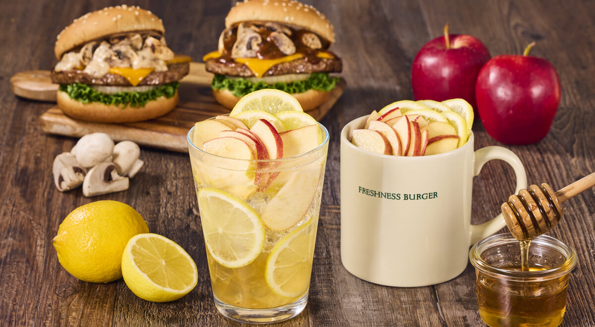 ハンバーガーチェーン「フレッシュネスバーガー」から、「クラフトアップルジンジャーレモネードソーダ(ICE)」と「クラフトアップルジンジャーレモネード(HOT)」が期間限定で登場!