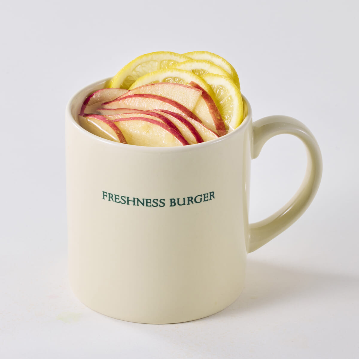 同じくハチミツに漬け込んだレモンスライスを合わせ、りんごのすっきりとフルーティーな甘みと芳醇な香り、レモンの酸味、ピリッと辛いジンジャーのスパイス感が味わえます。