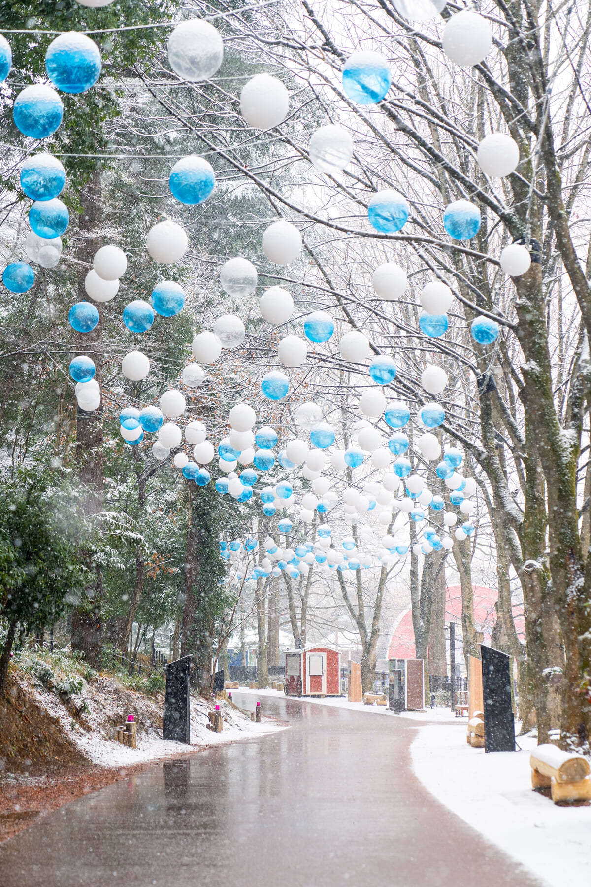 ムーミンバレーパークを訪れる人々を幻想的なクリスマスの世界へと誘います。