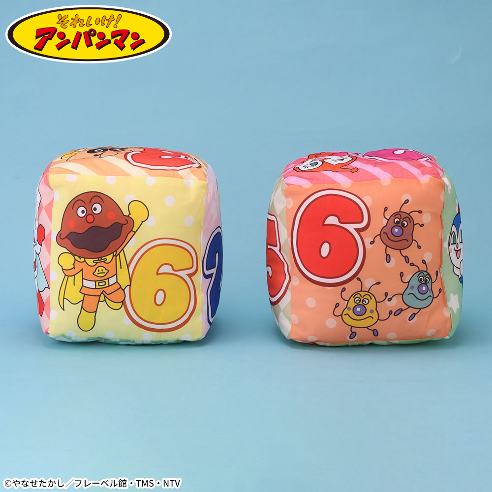「アンパンマン」や「ばいきんまん」のなかまたちを描いた、大きなサイコロ型クッションの第2弾が登場。